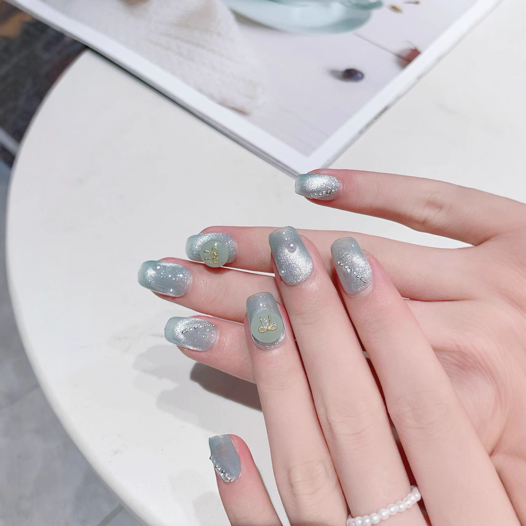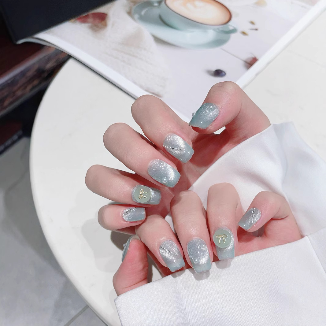 纯手工光疗穿戴美甲国风平安扣批发成品重复使用贴片可拆卸假指甲