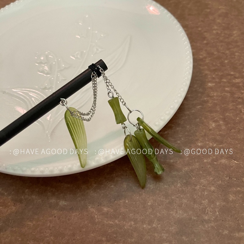 清冷感新中式竹叶流苏发簪气质发钗小众设计感国潮古风头饰高级感