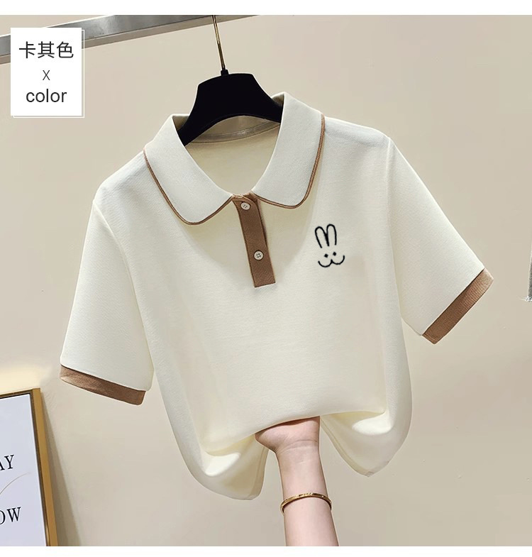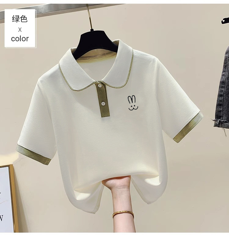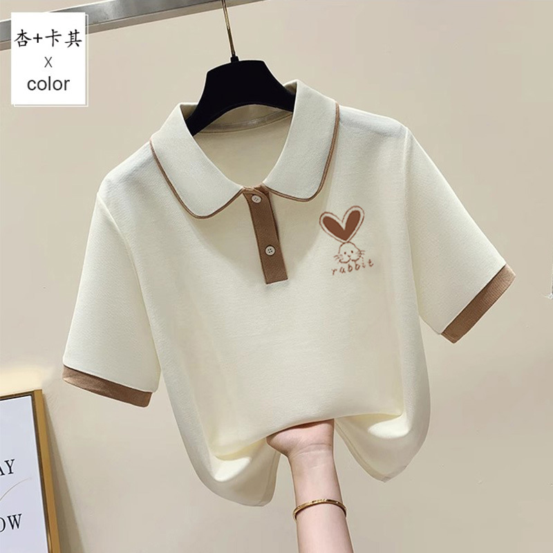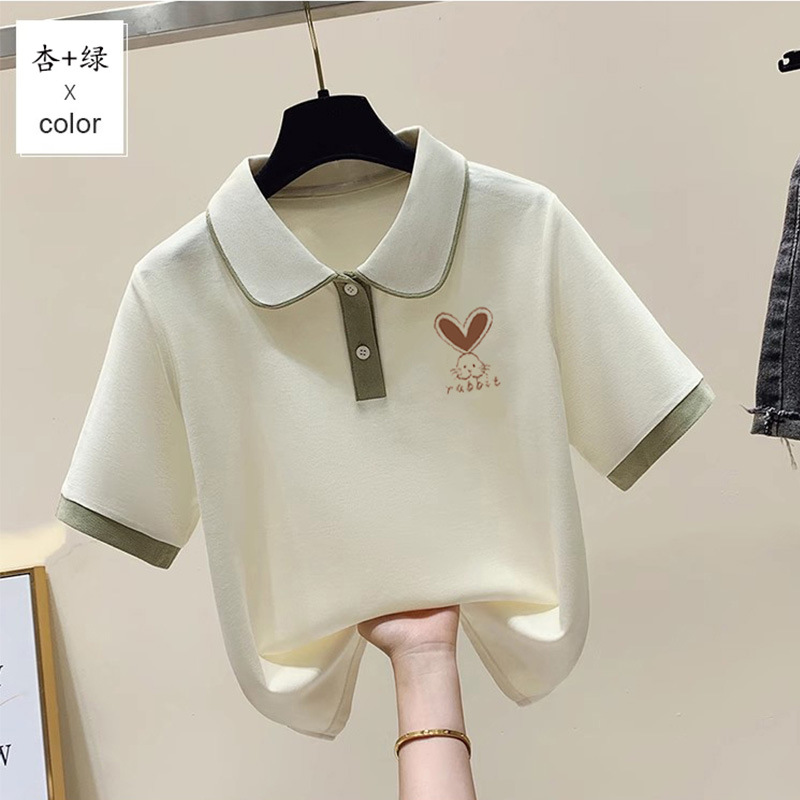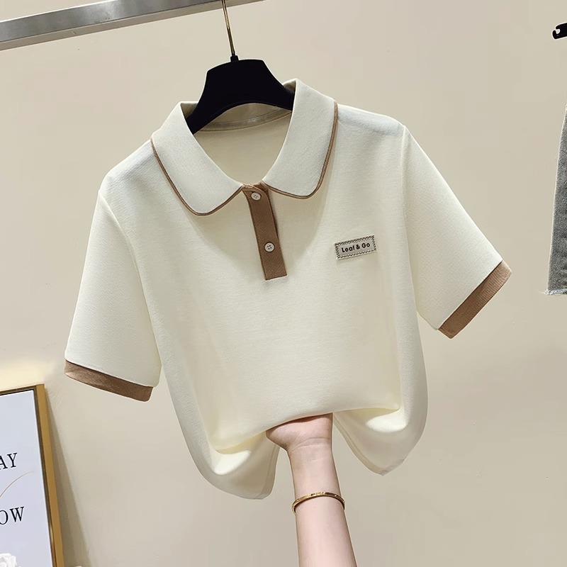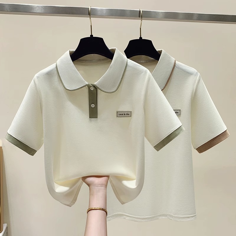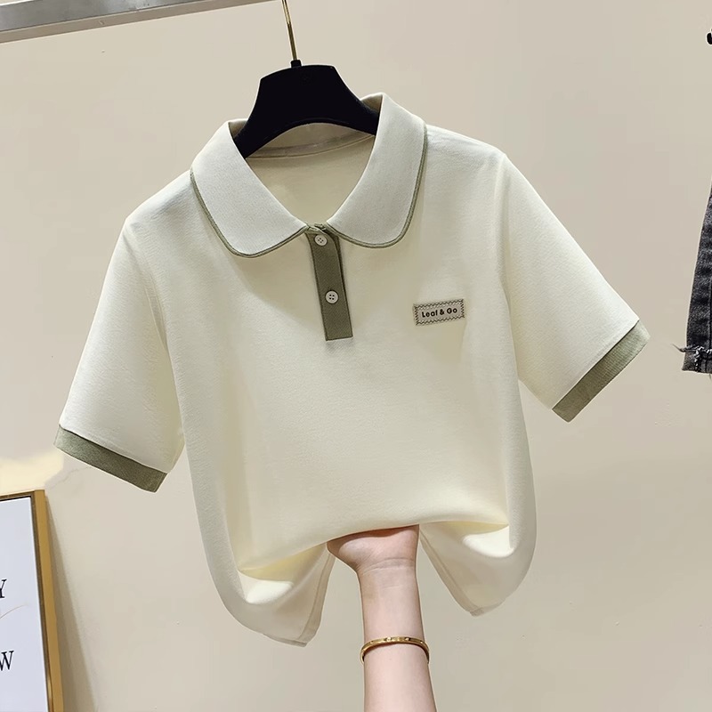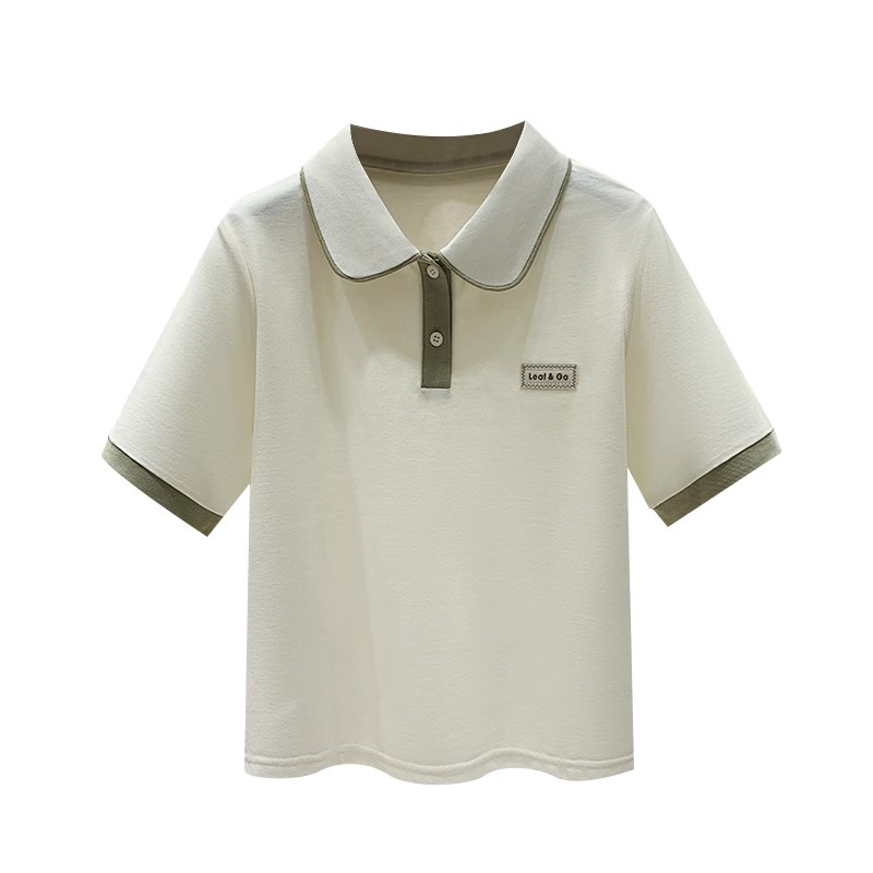 Polo领短袖T恤少女夏装新款初中高中学生宽松学院风休闲上衣