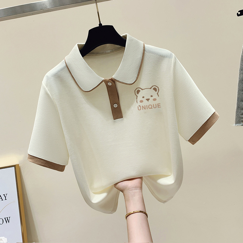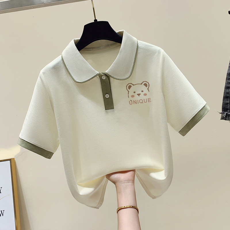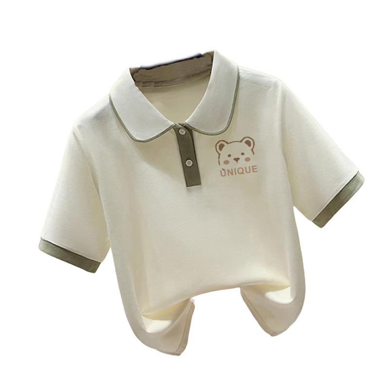 夏季新款小众设计感拼色娃娃领短袖T恤女学生学院风翻领上衣