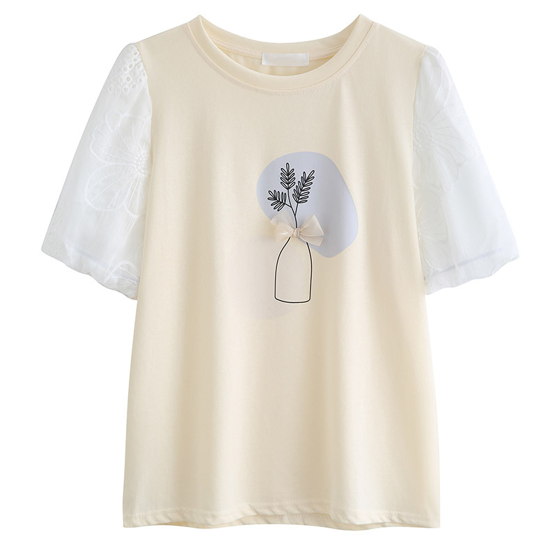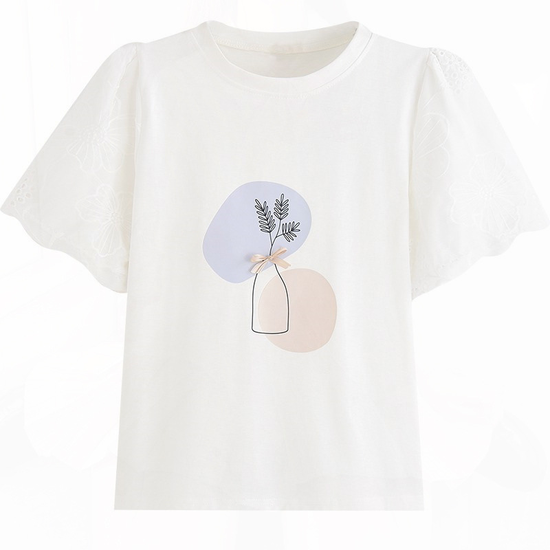 白色短袖T恤女设计感小众夏装百搭甜美正肩泡泡袖小个子上衣ins潮