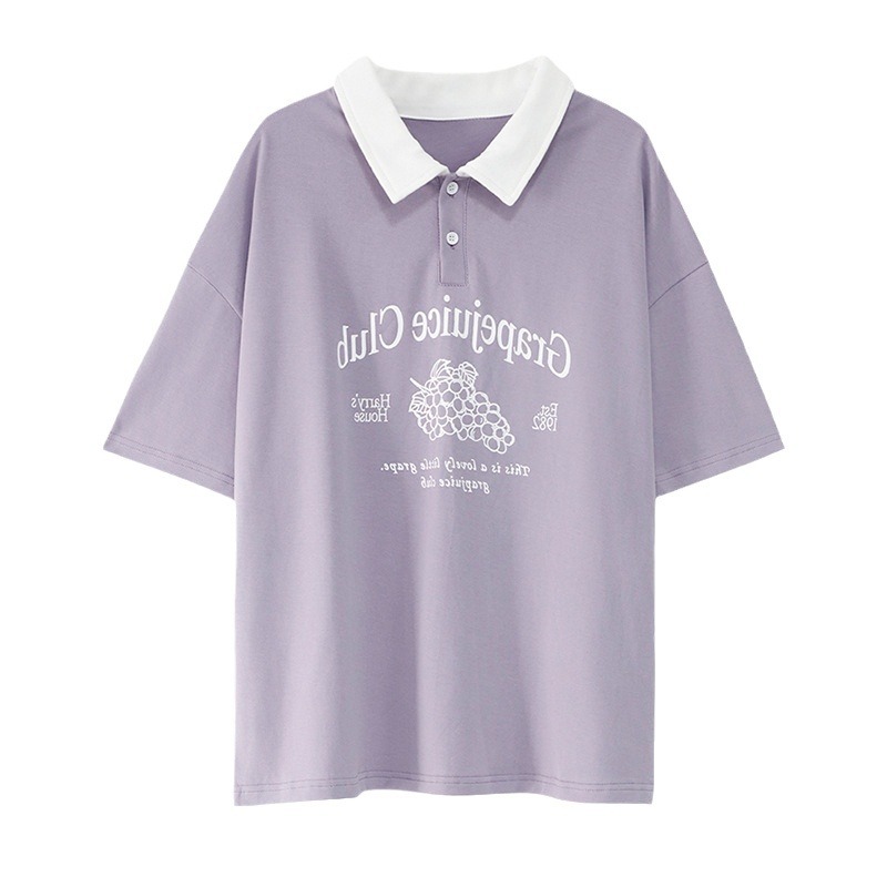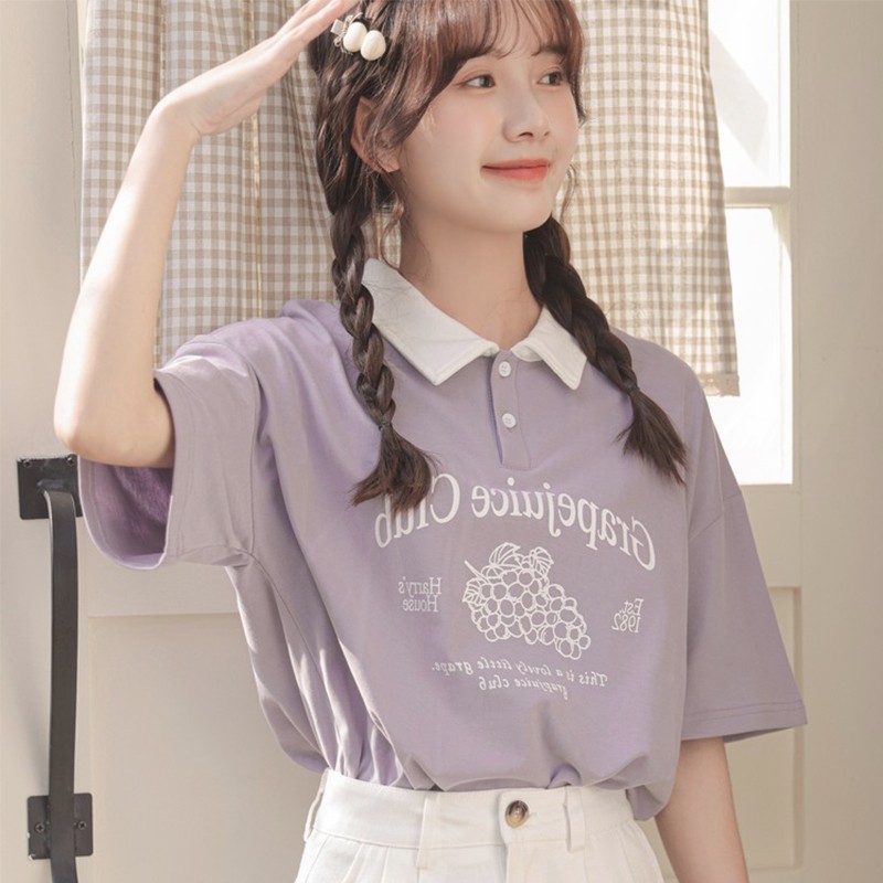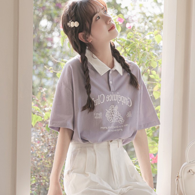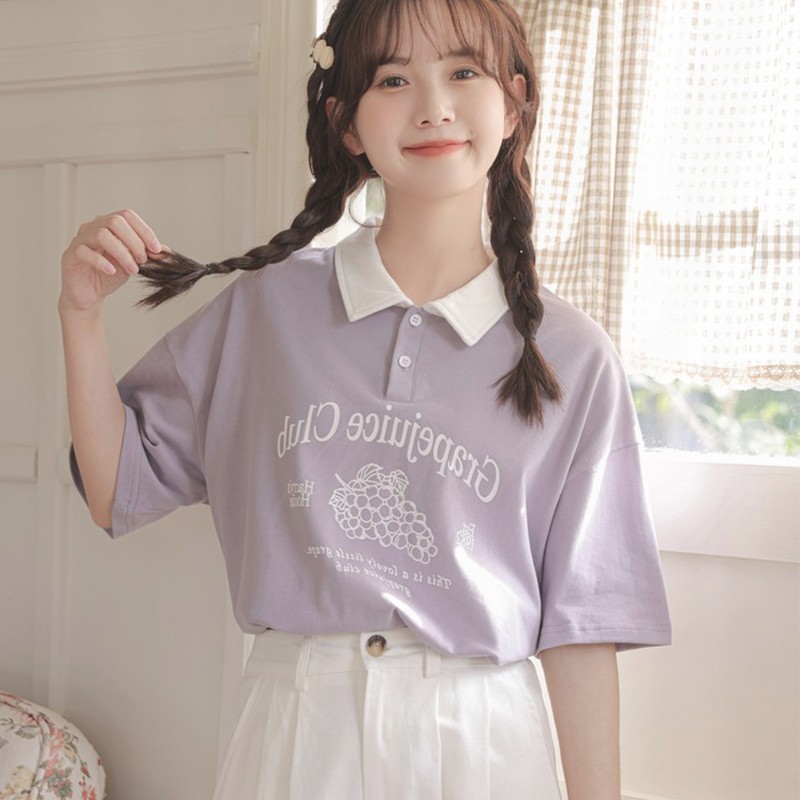 可盐可甜洋气polo领短袖t恤少女学院风学生翻领宽松百搭独特上衣