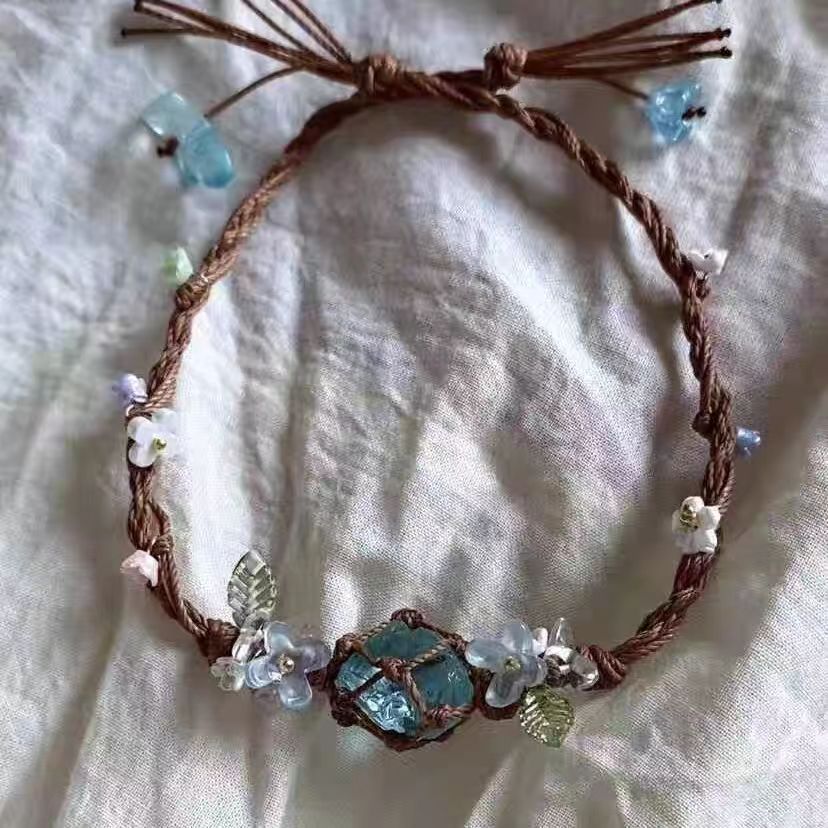 macrame手工编制原石水晶手绳清新手工编织手链森系闺蜜礼物diy