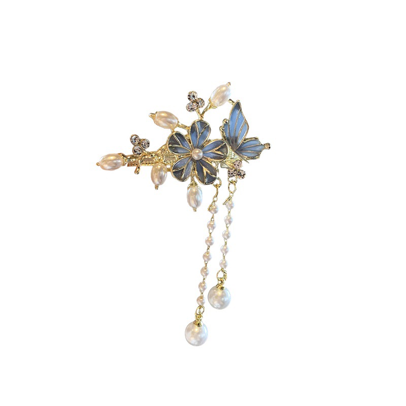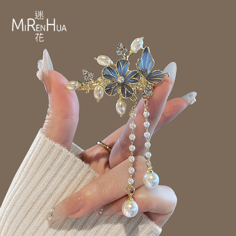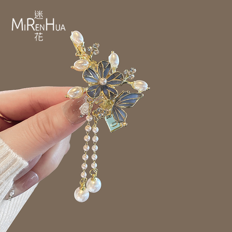 ins古风蝴蝶流苏边夹女精致鸭简约高级感刘海夹碎发夹新中式发卡