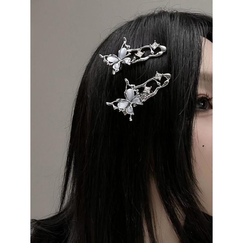 小众液态猫眼石蝴蝶鸭女精致侧边刘海夹高级感小号一字夹发夹