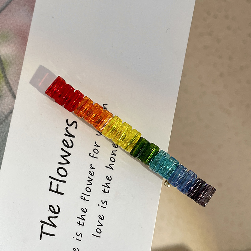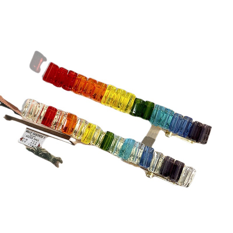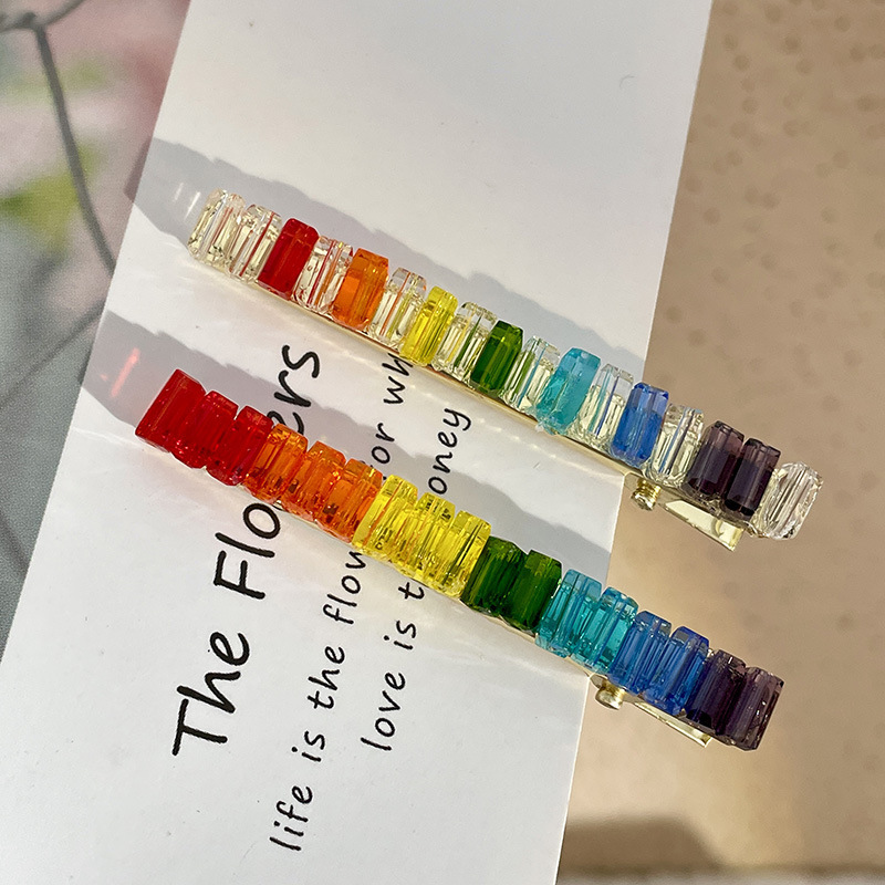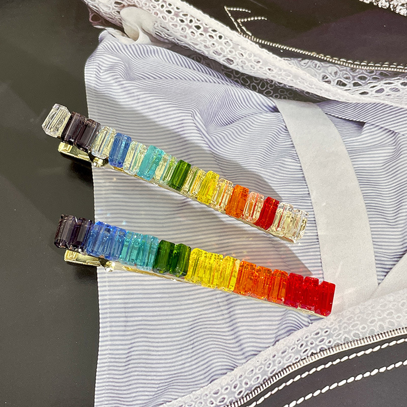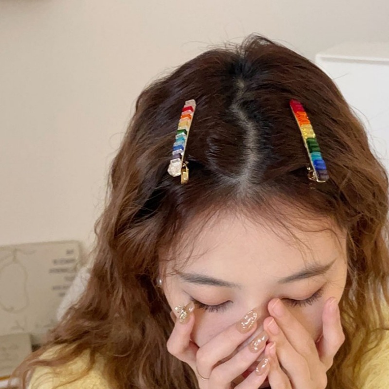 渐变彩虹色精致水钻刘海夹前额网红碎发夹女侧边简约鸭子头饰