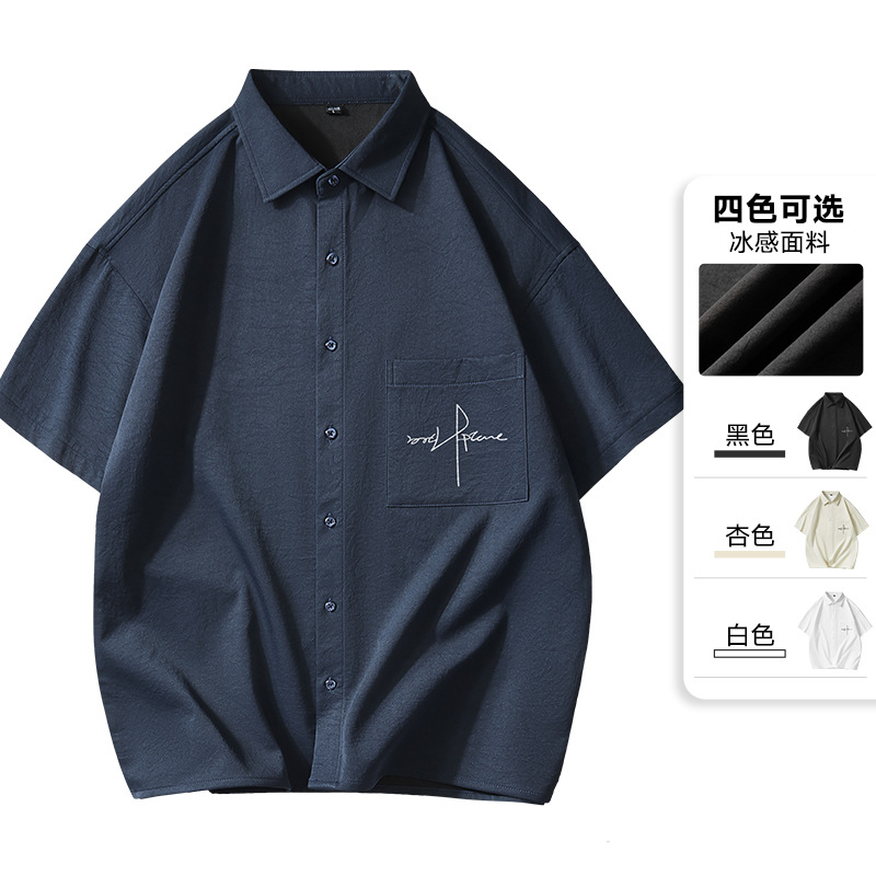 2025年夏季新款短袖衬衫男冰感宽松潮流休闲衬衫男T恤上衣服