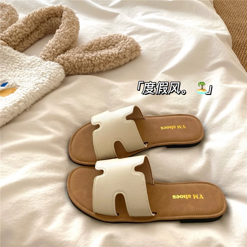 平底凉拖鞋女2025新款夏季外穿高级感懒人软底海边沙滩一字凉拖鞋