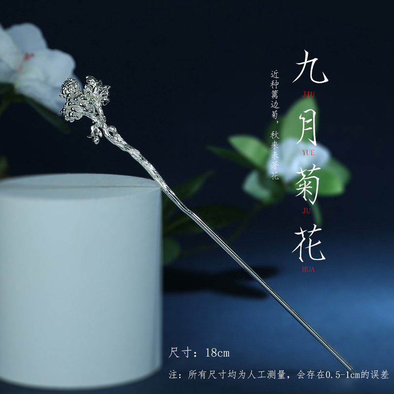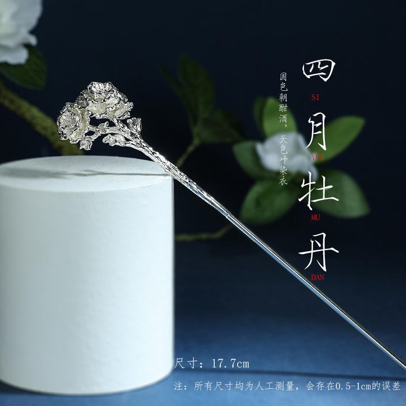 十二花神新中式簪子925银发簪高级感简约发钗盘发汉服铜合金发饰