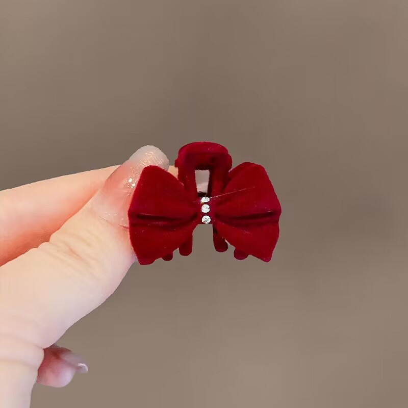 ins超仙公主风蝴蝶结夹子头饰小号发夹侧边刘高级感植绒发饰