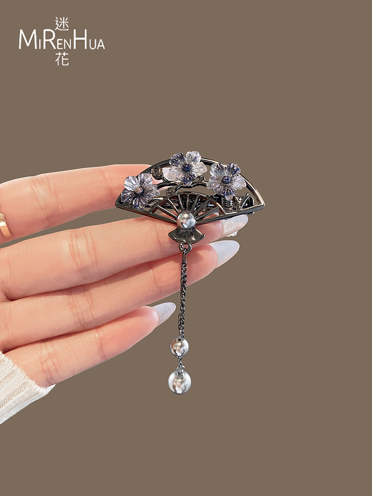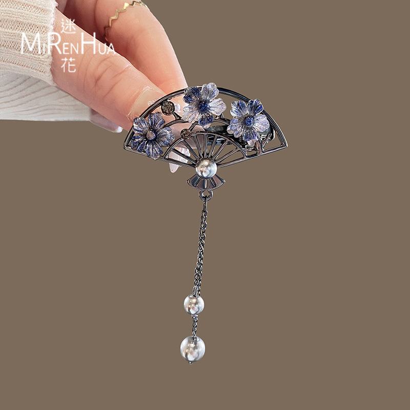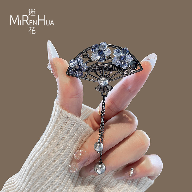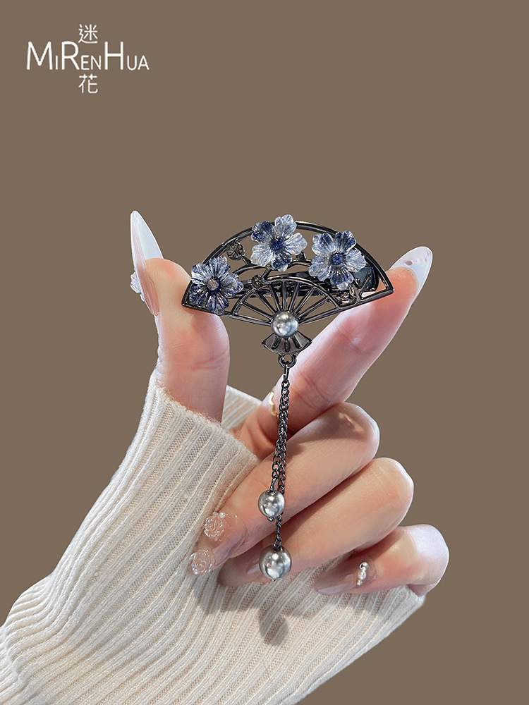 新中式水墨画发夹女款流苏鸭子简约碎发夹刘海夹侧边夹小众发卡