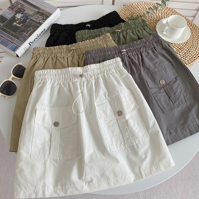 松紧腰个性口袋工装短裙女夏季休闲百搭半身裙防走光裙子女