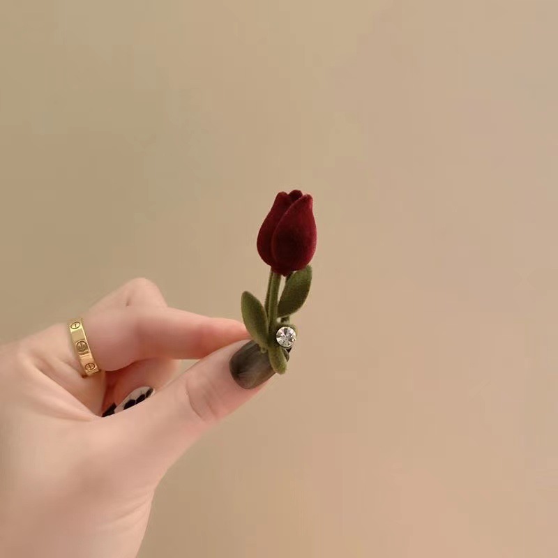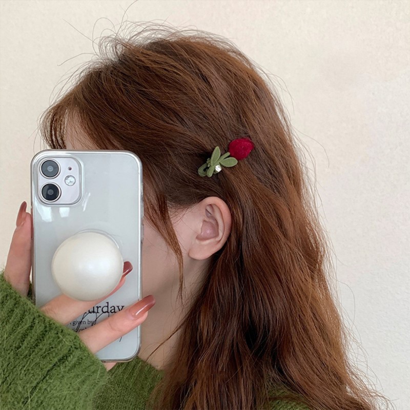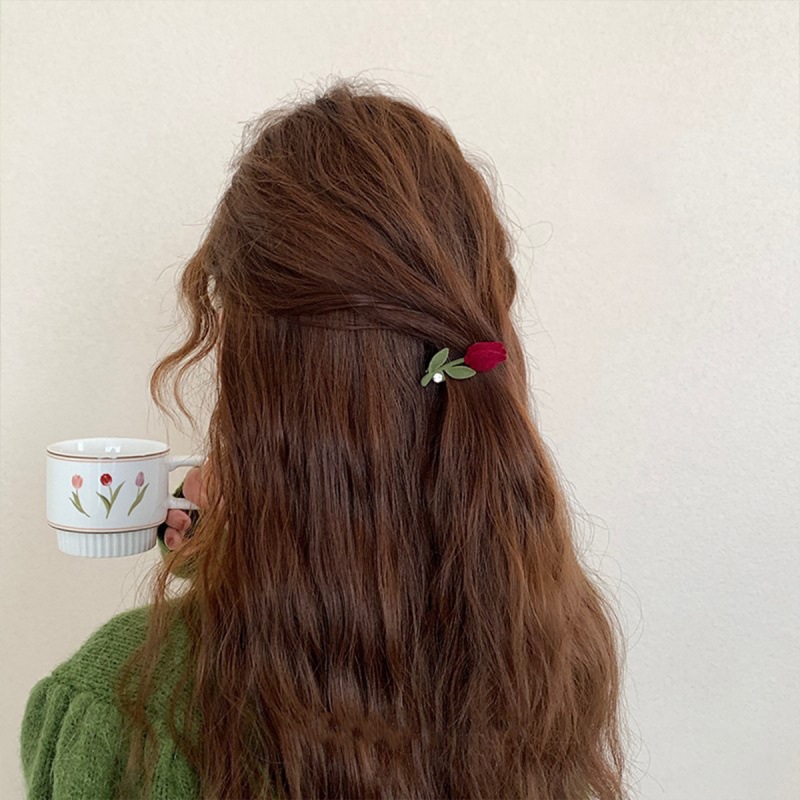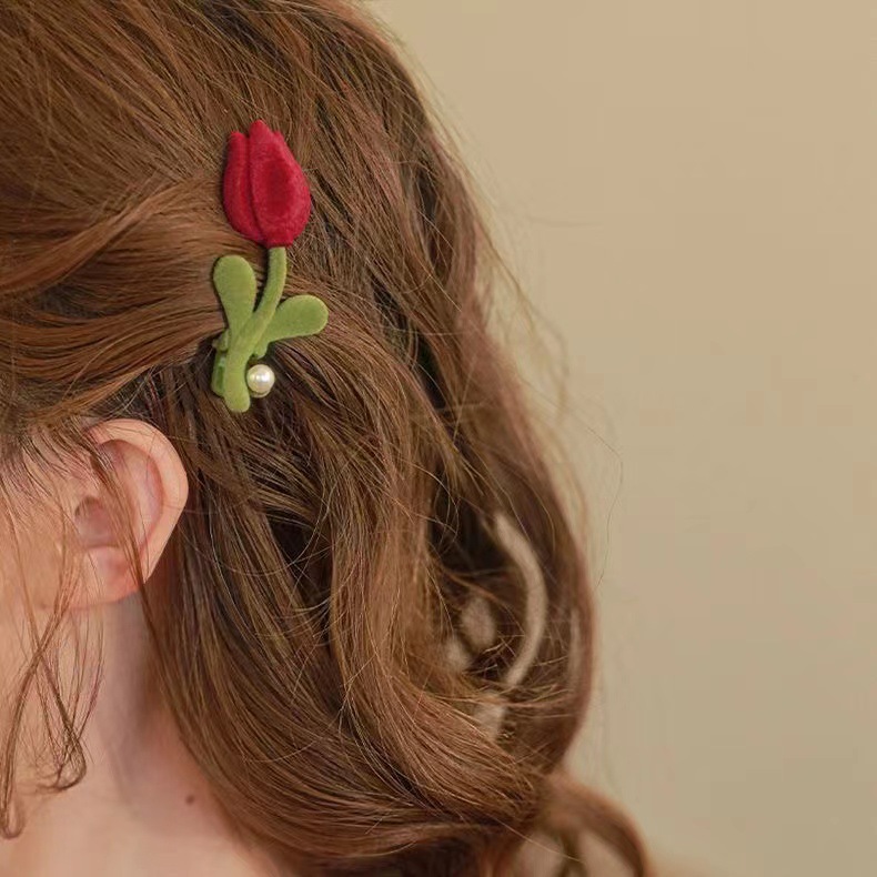 新中式侧边丝绒郁金香刘海发夹女秋冬网红高级感气质头饰夹子边夹