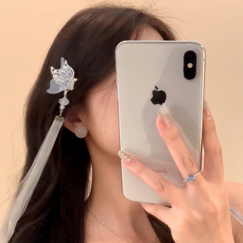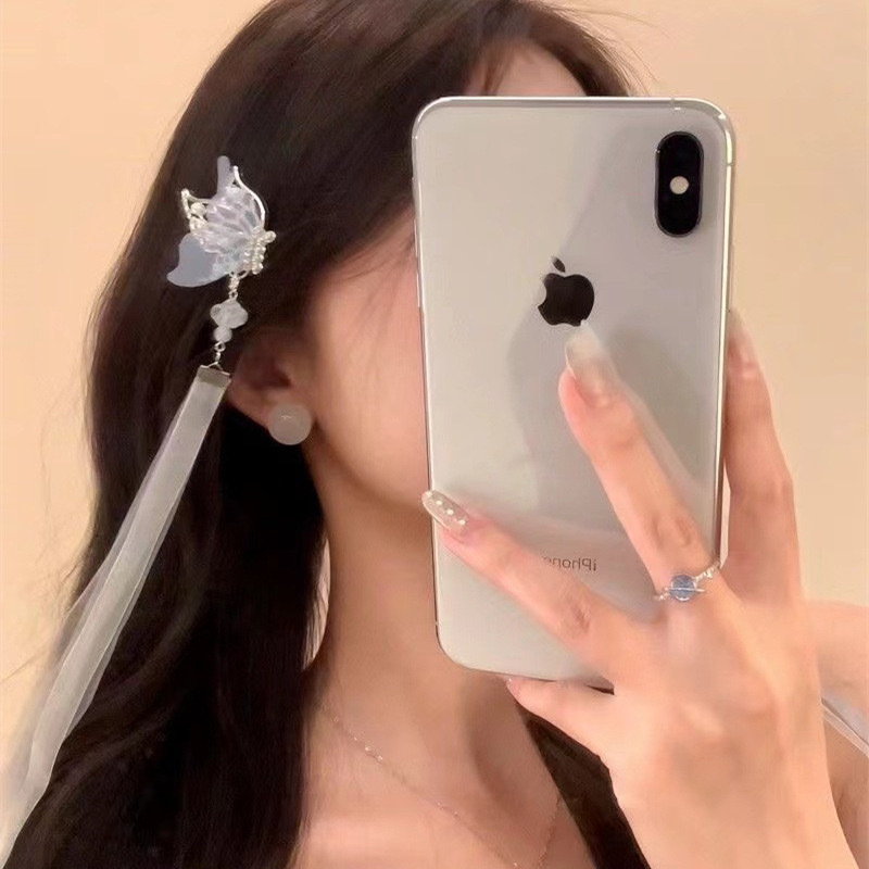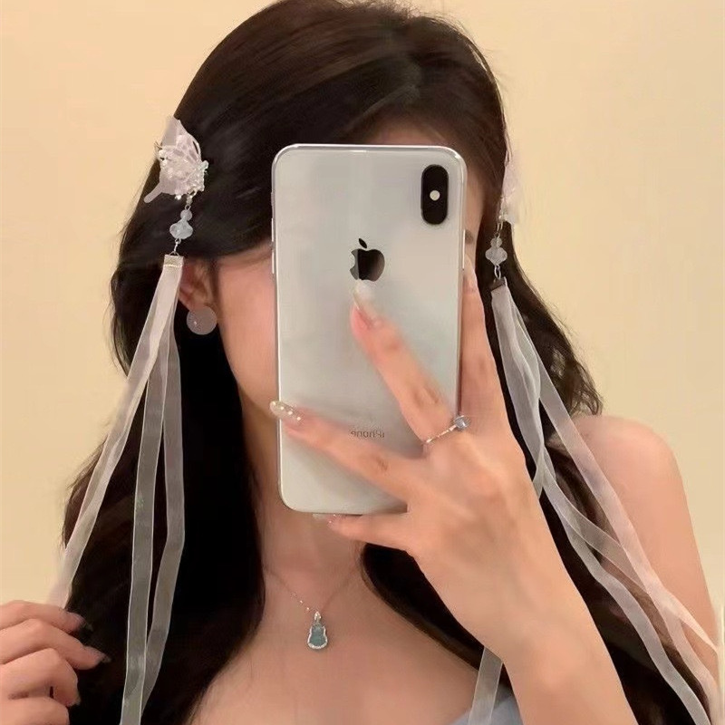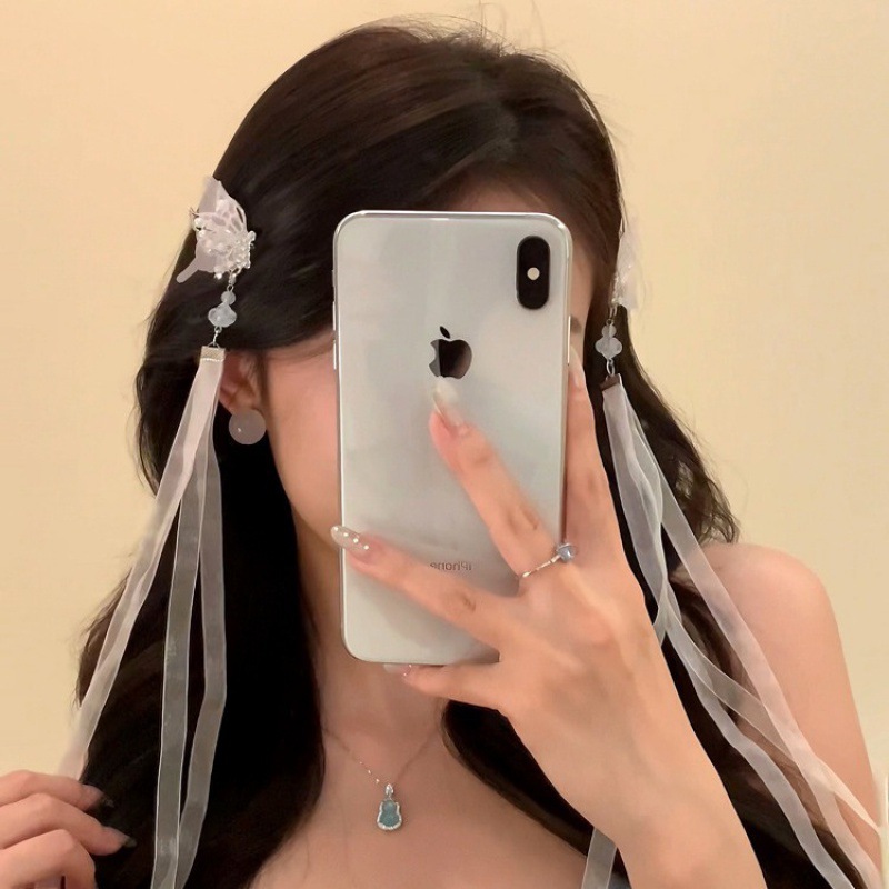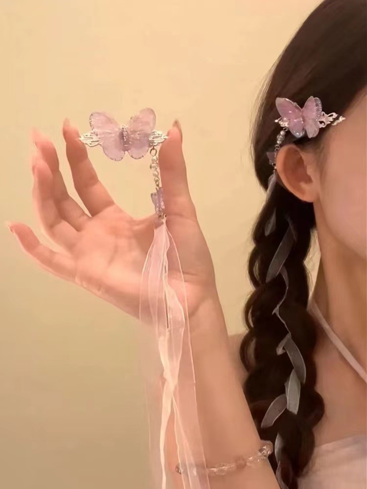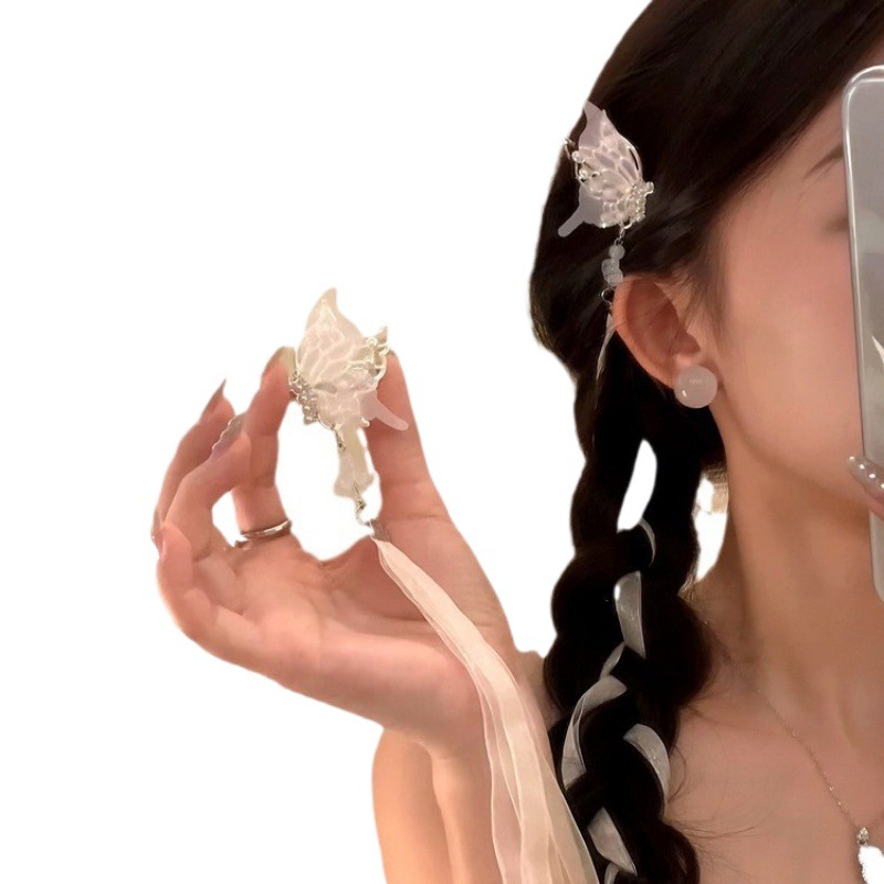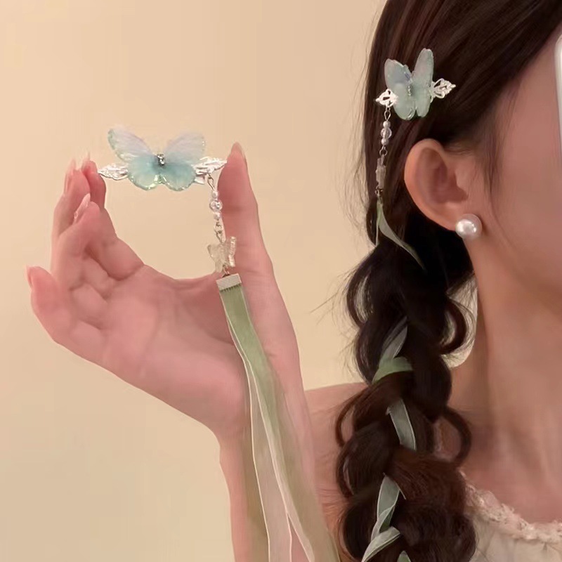 薄荷曼波新中式蝴蝶编发丝带发夹女芭蕾风发饰绑发飘带发夹带头饰
