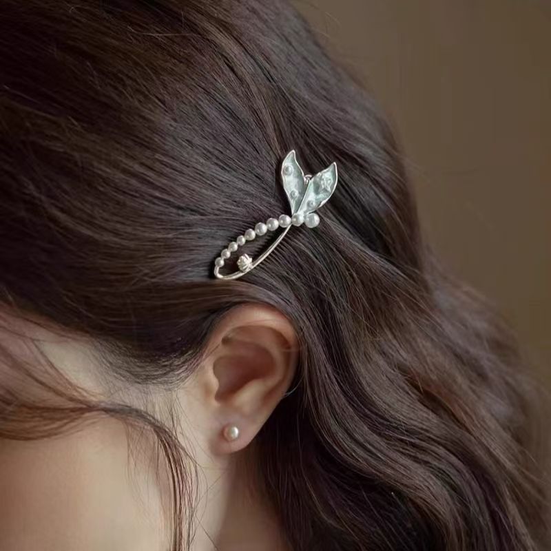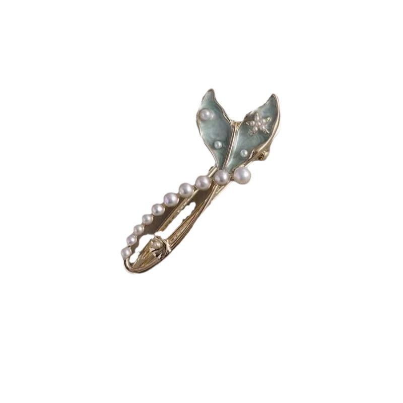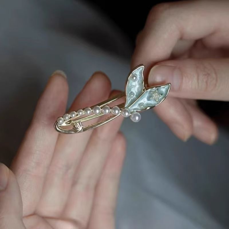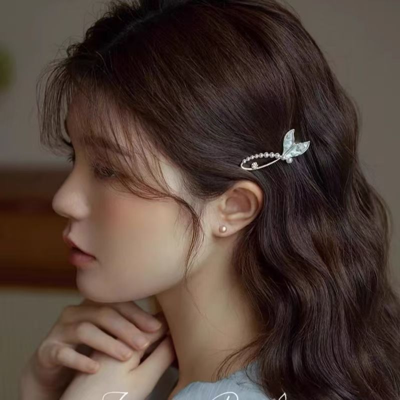 ins超仙仙气鱼尾侧边发夹高级蓝色刘海夹百搭珍珠发卡发饰鸭边夹