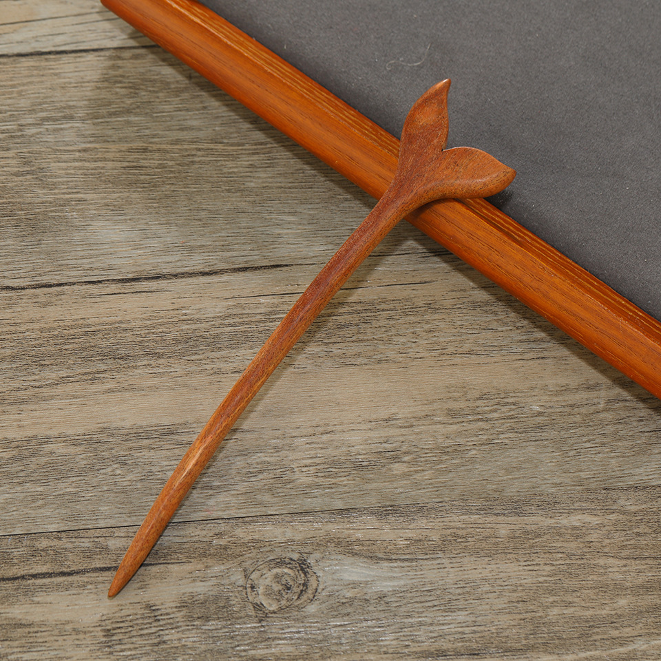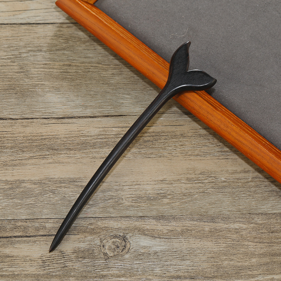 复古新中式清冷系鱼尾檀木发簪高级感国风一字盘簪子古装汉服头饰