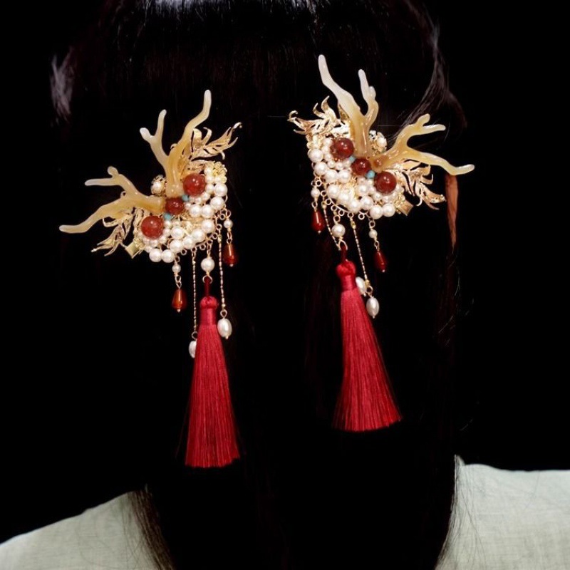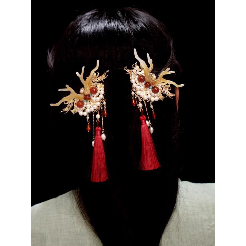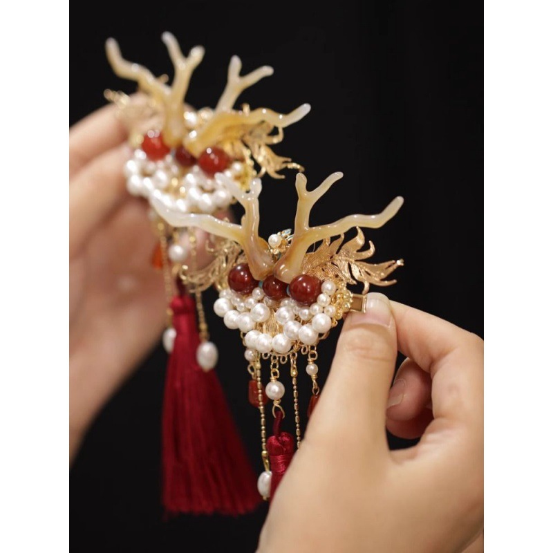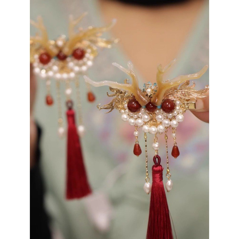 古风龙年龙角小边夹头饰发夹边夹侧边古典汉服中国风配饰醒狮发饰