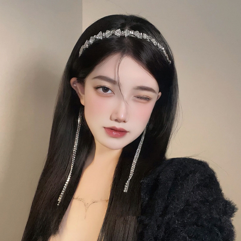 ins超仙闪耀流苏发箍女仙气水钻蝴蝶结头饰一体头箍气质发卡发饰