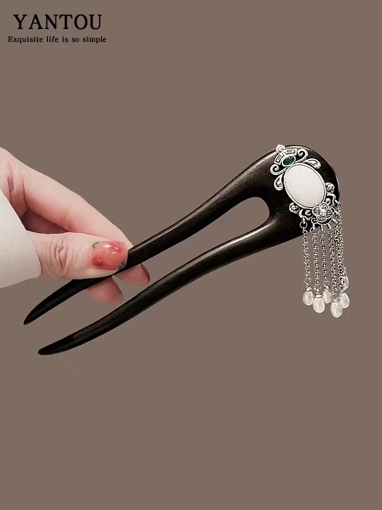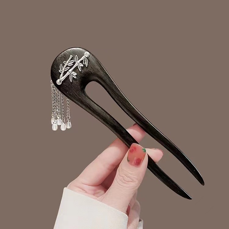 ins新中式藏式古典发簪古风檀木U形簪子古装发饰发钗步摇复古盘发