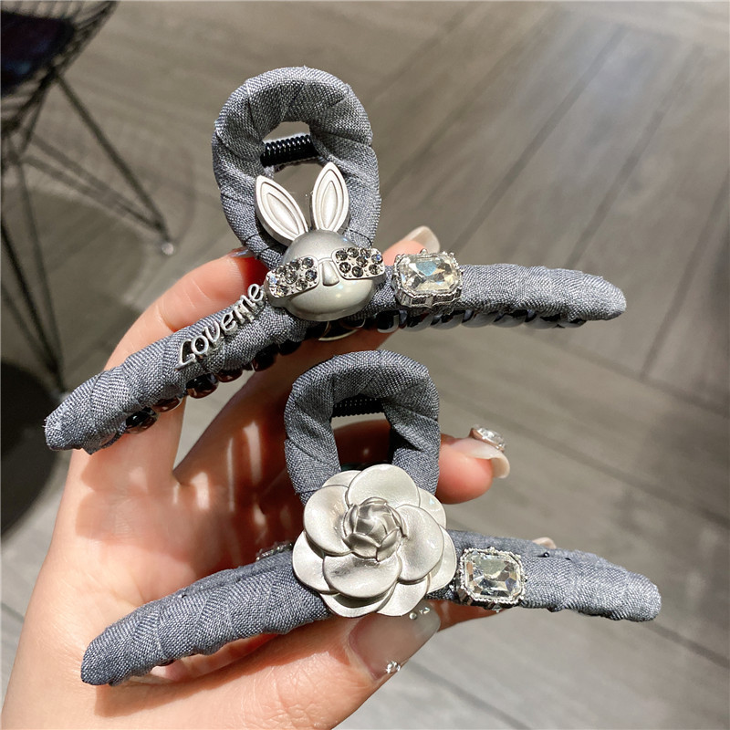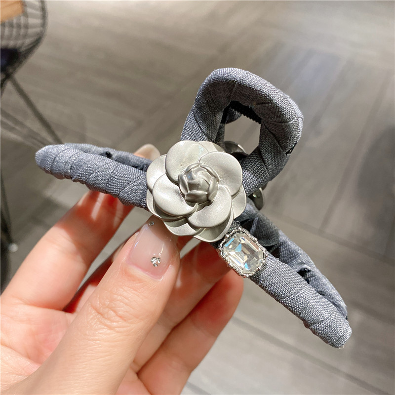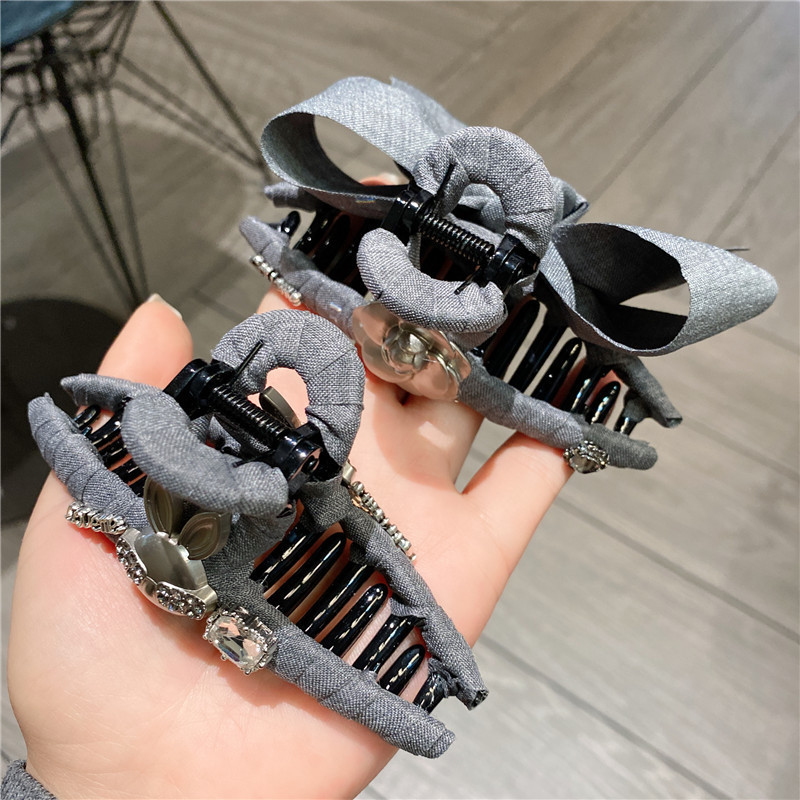 法式气质布艺灰色大蝴蝶结头饰抓夹后脑勺发夹可爱花朵公主鲨鱼