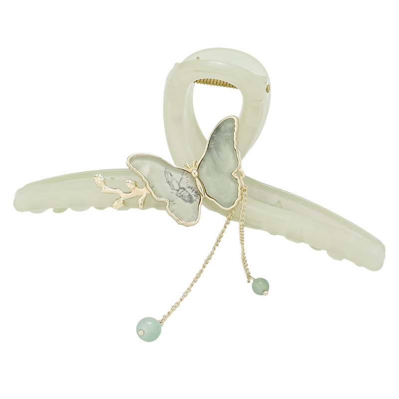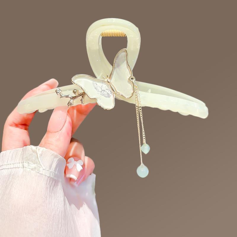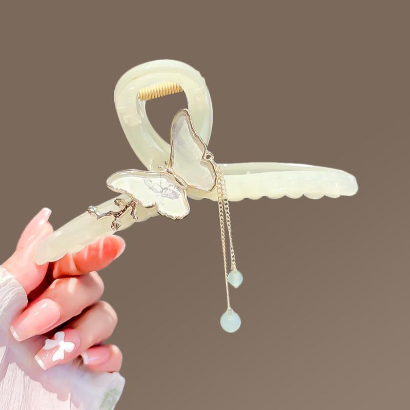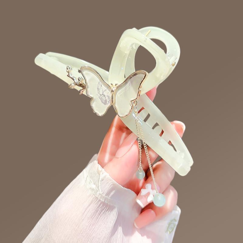 蝴蝶流苏新中式发夹女夏季大号抓夹后脑勺盘发鲨鱼夹子高级感发抓