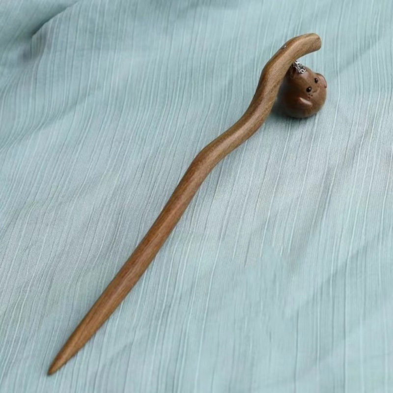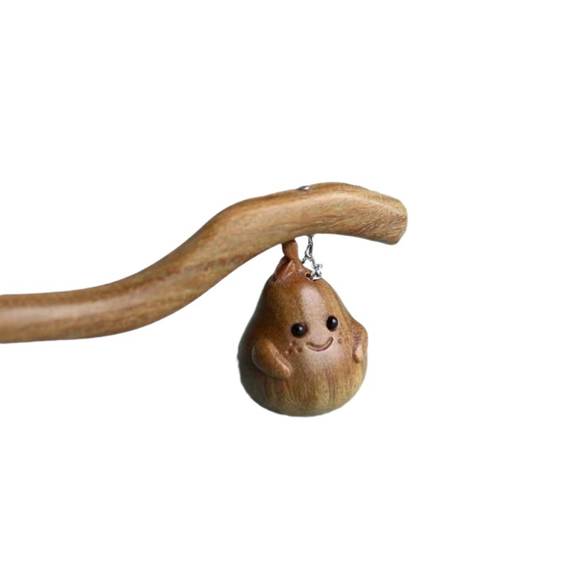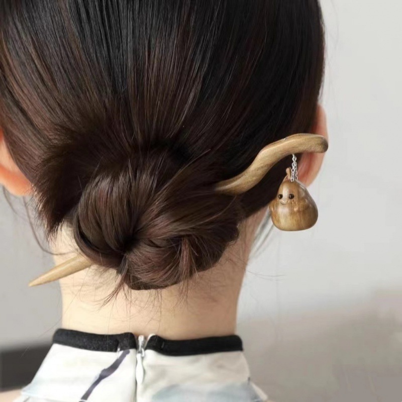 原创【鸭梨山大】绿檀木发簪盘发簪子新中式古典小众可爱个性头饰