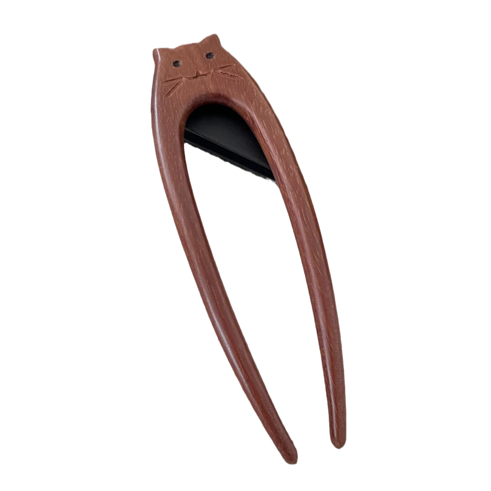 简约复古木质发簪新中式卡通可爱猫咪盘发发簪高级感U型发簪古典