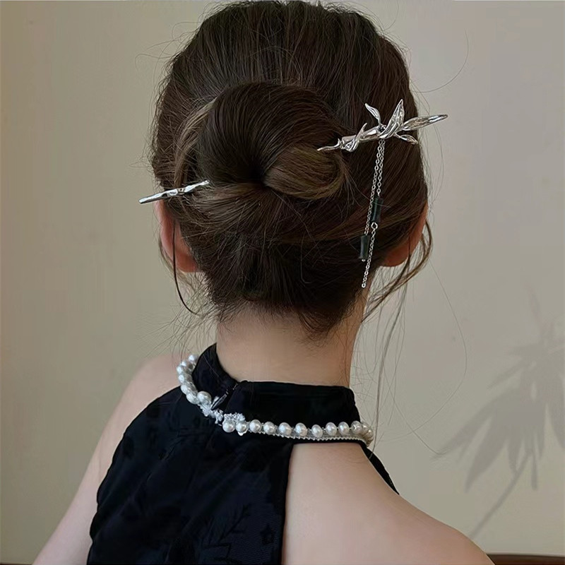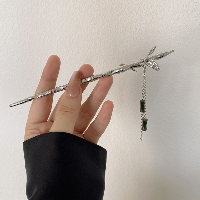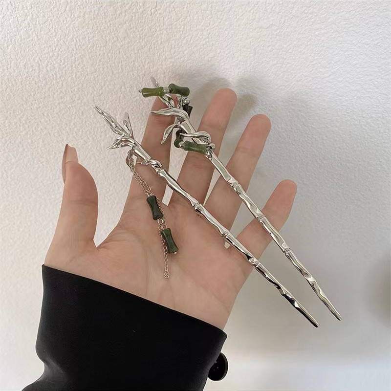 凛冬绿竹~新中式发簪古风简约金属簪子女高级感气质优雅盘发头饰