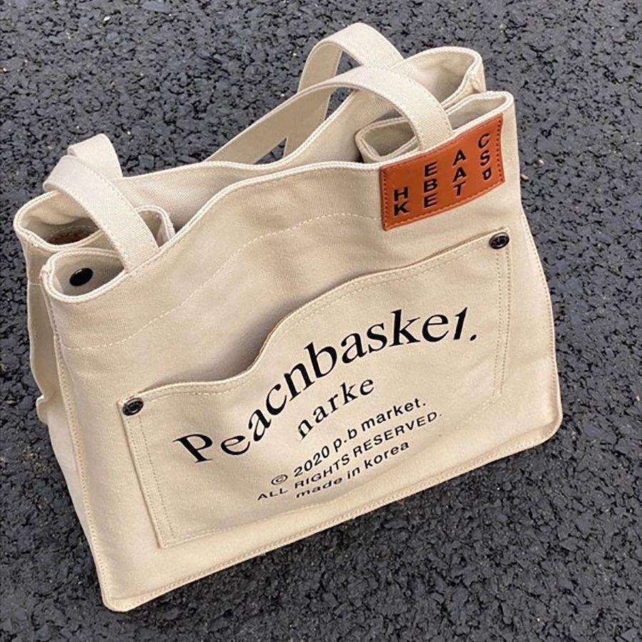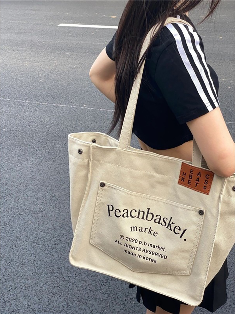 大容量托特包女 韩版印花大学生上课帆布包原宿风文艺单肩包