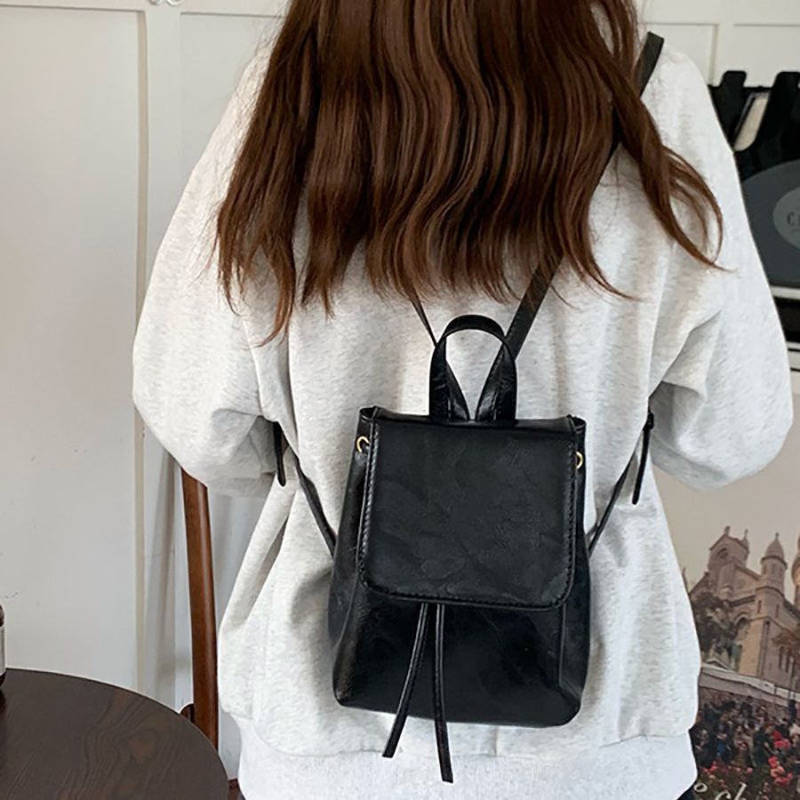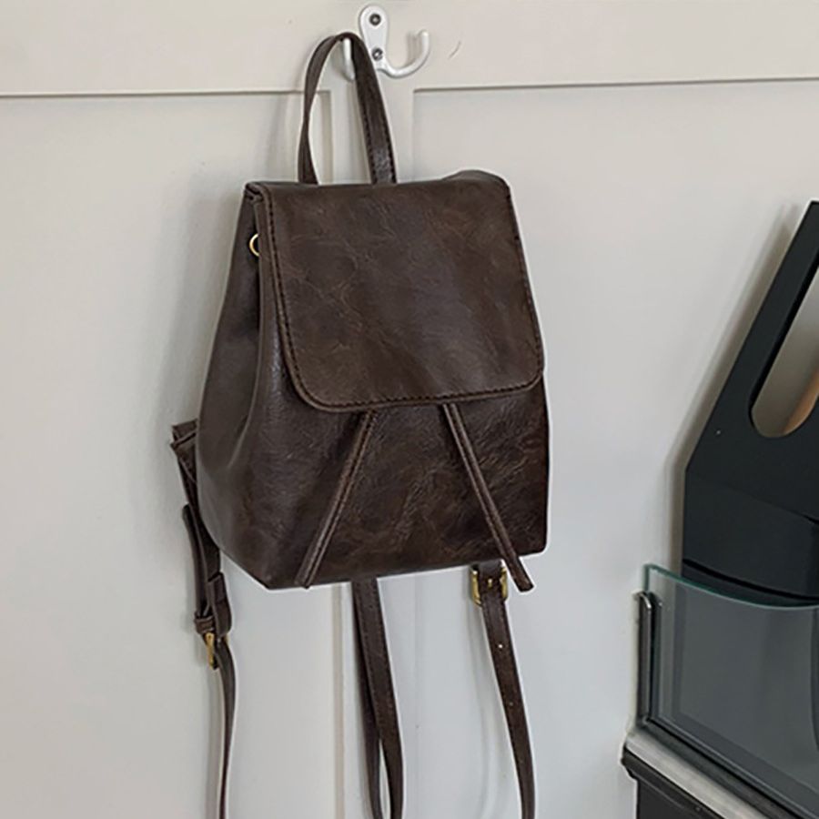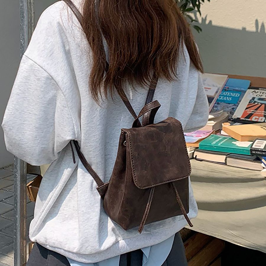 小红书同款小巧复古棕色双肩包女春夏新款简约文艺百搭单肩包