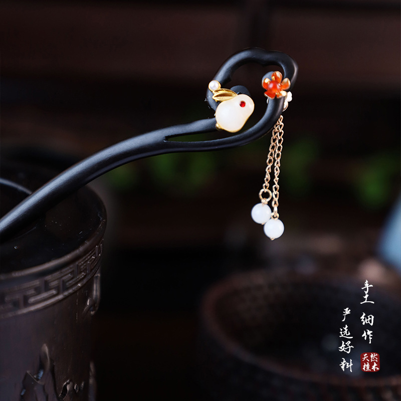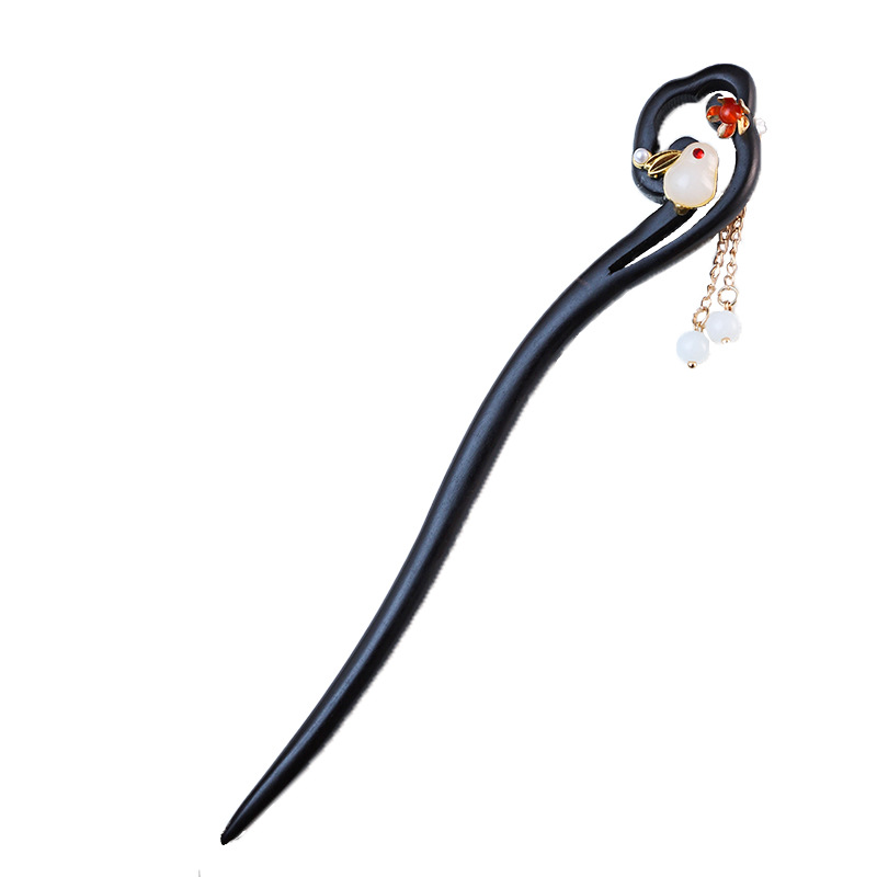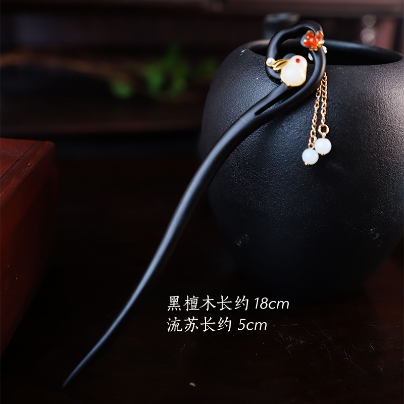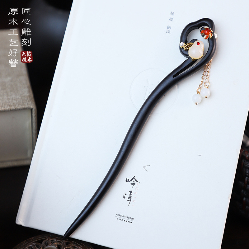女黑檀木发簪古风檀木发钗簪子高级感新中式盘发木簪马面裙配饰