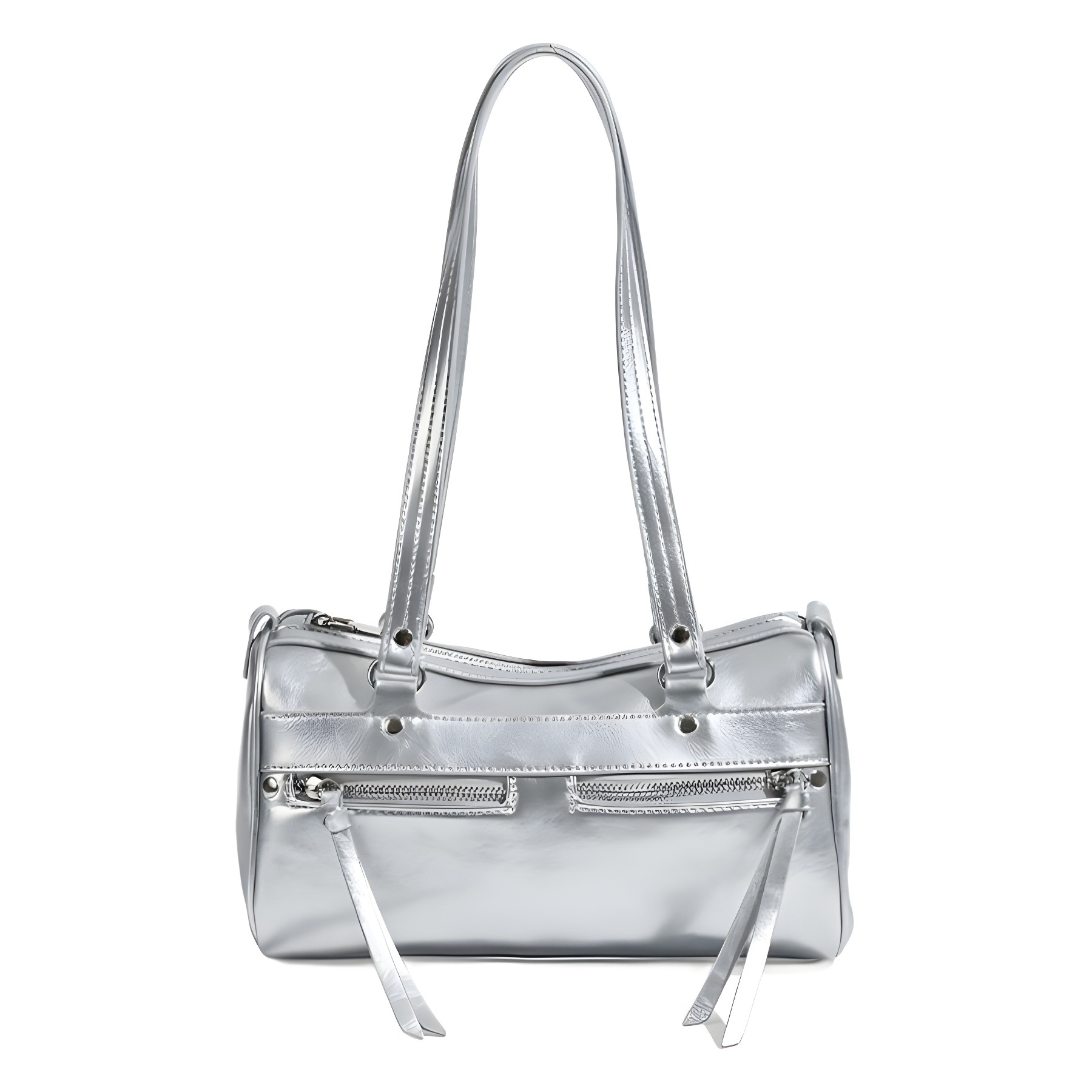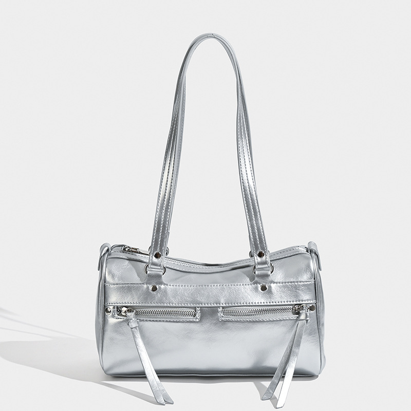 韩国小众设计银色辣妹机车包百搭枕头包大容量多口袋单肩腋下包女
