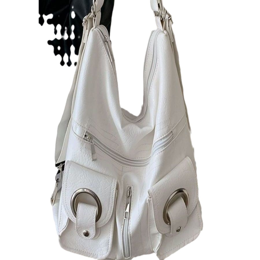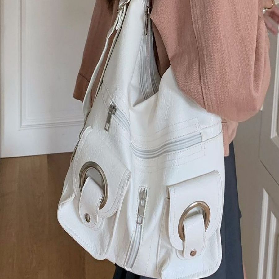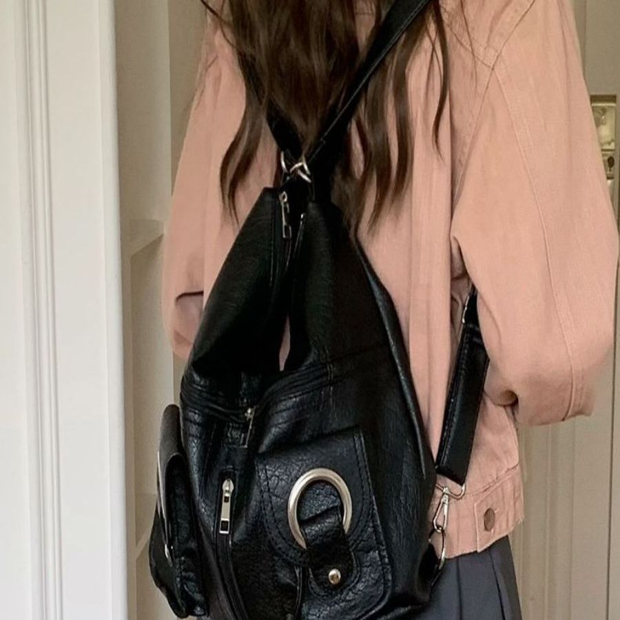 包包前面有一个拉链袋可放下手机 两个磁扣小袋可放耳机或口红