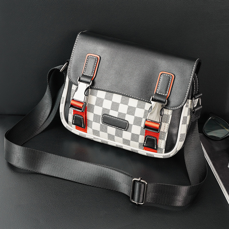 经典格纹男士邮差包横款小方包男包时尚百搭斜挎包通勤男挎包