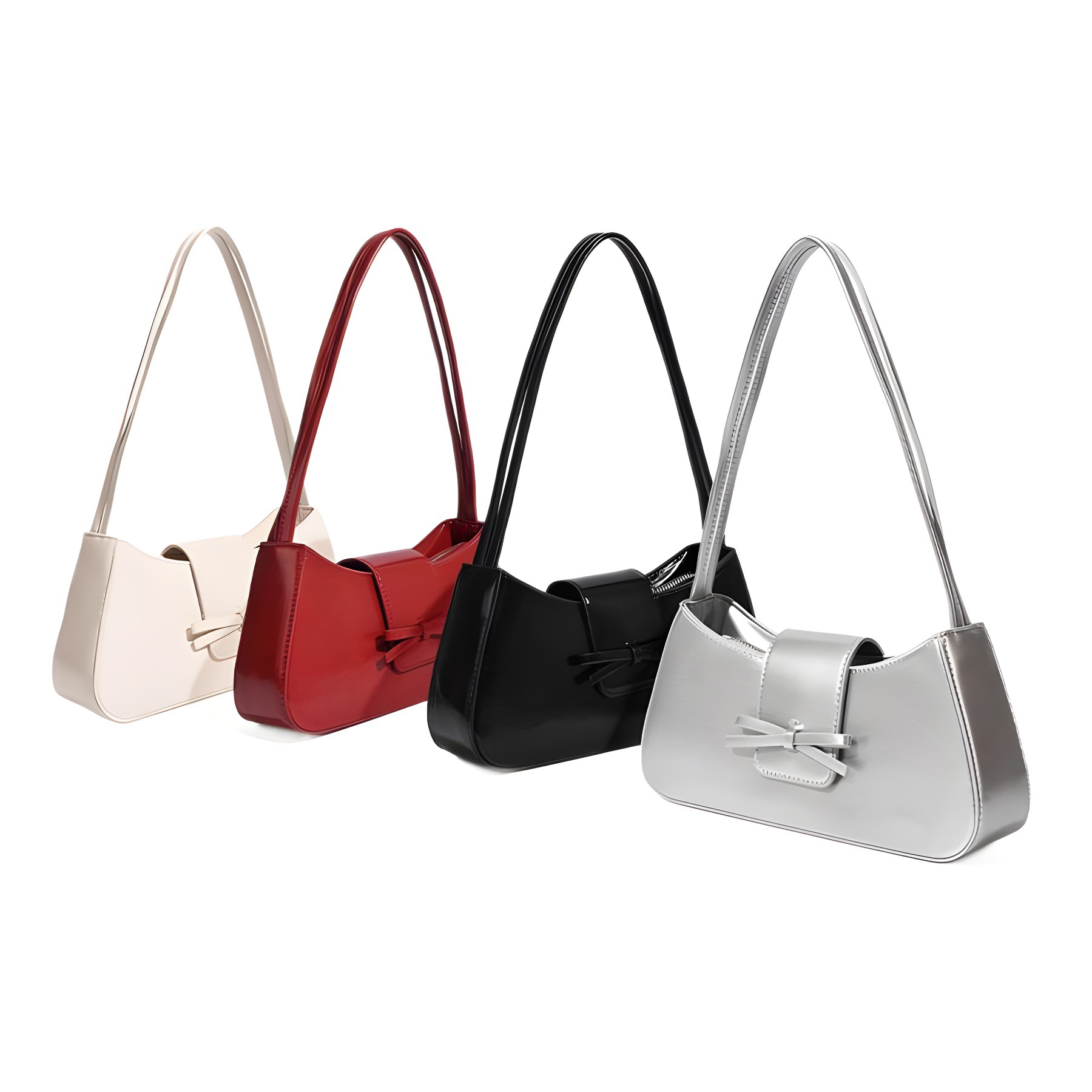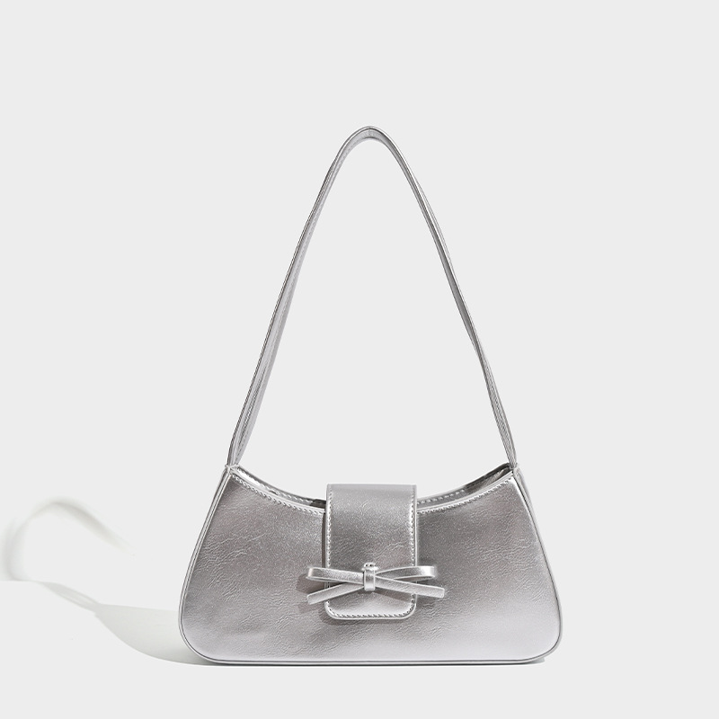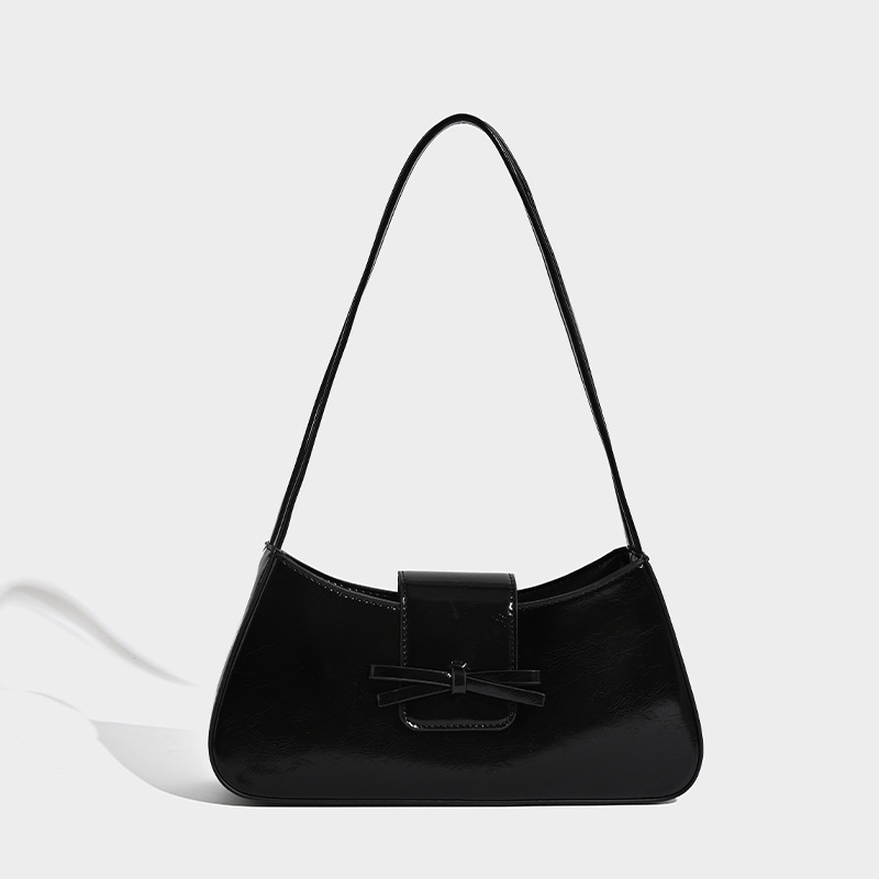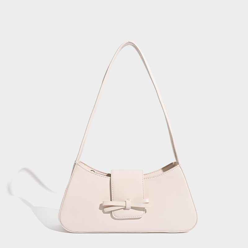 新款红色包包时尚PU定型女士单肩包极简小众蝴蝶结法棍腋下包