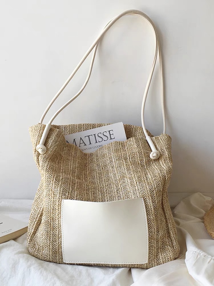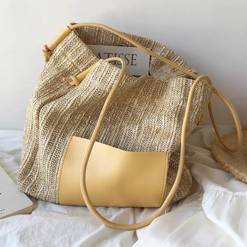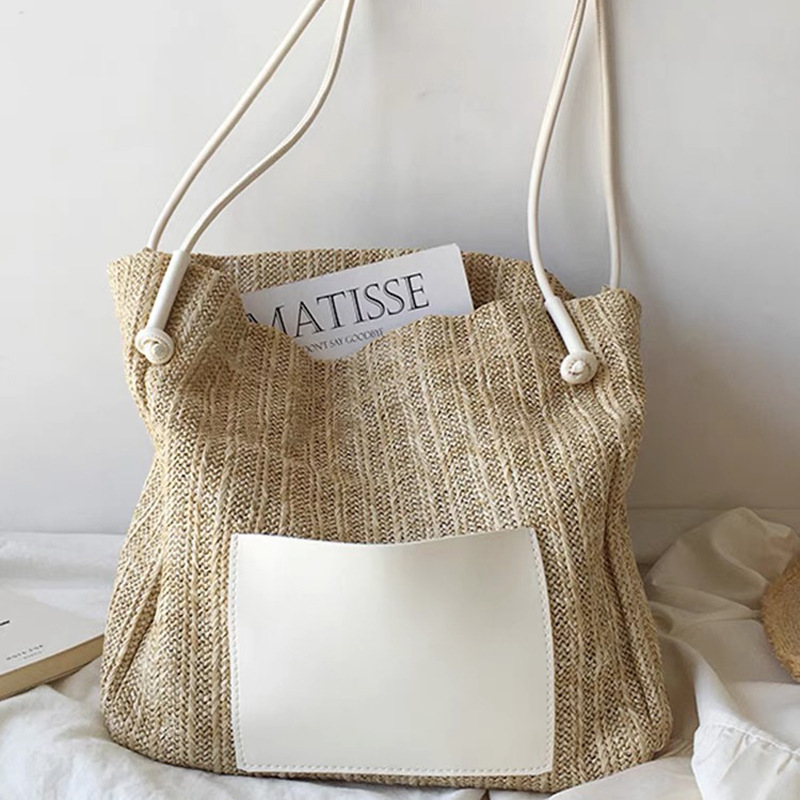 ins复古编织托特度假草编单肩包大容量斜挎购物袋沙滩包子母包