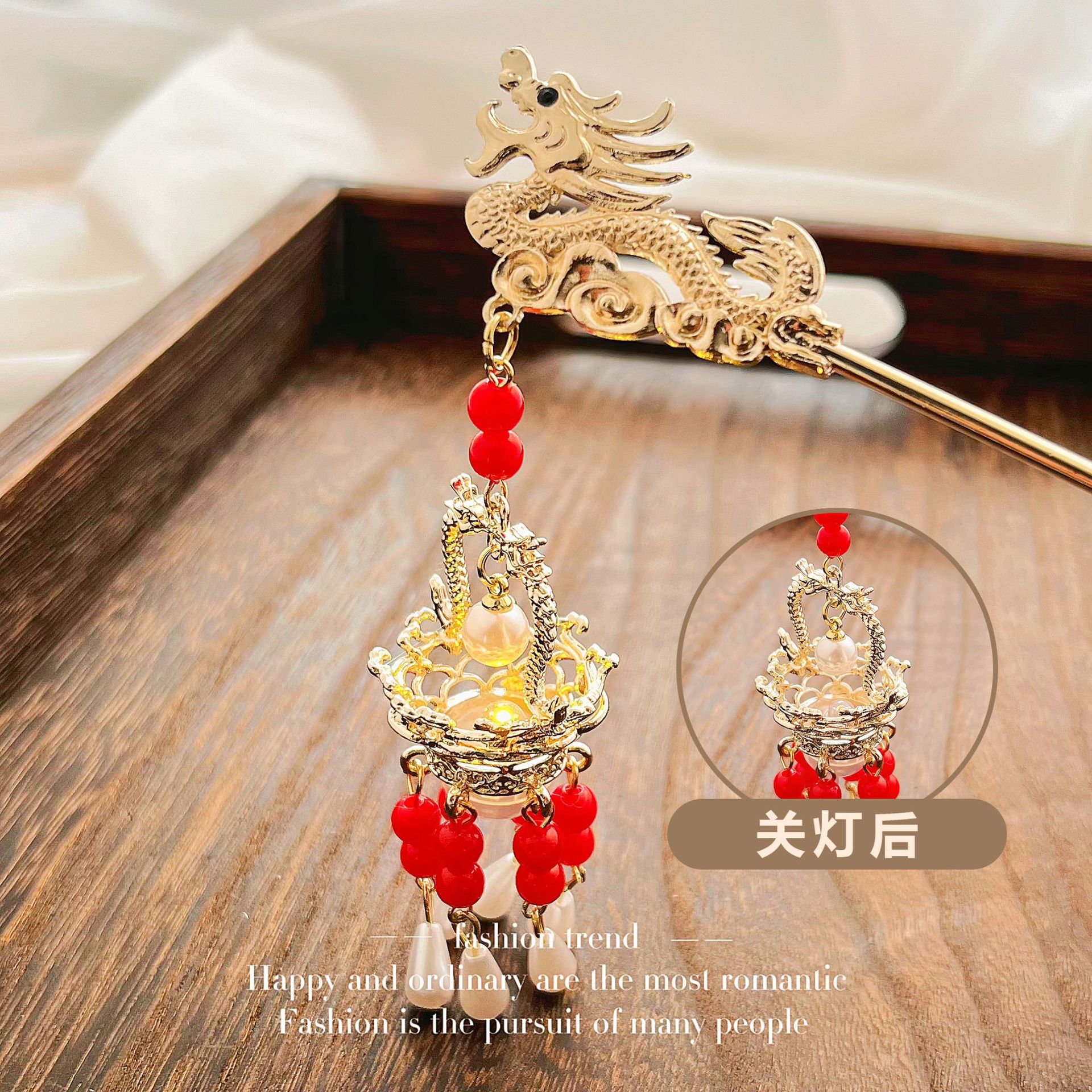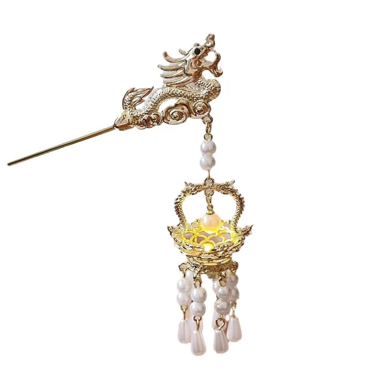 新中式复古发光龙年流苏挽发发簪宫廷高级感汉服旗袍头饰配饰发饰