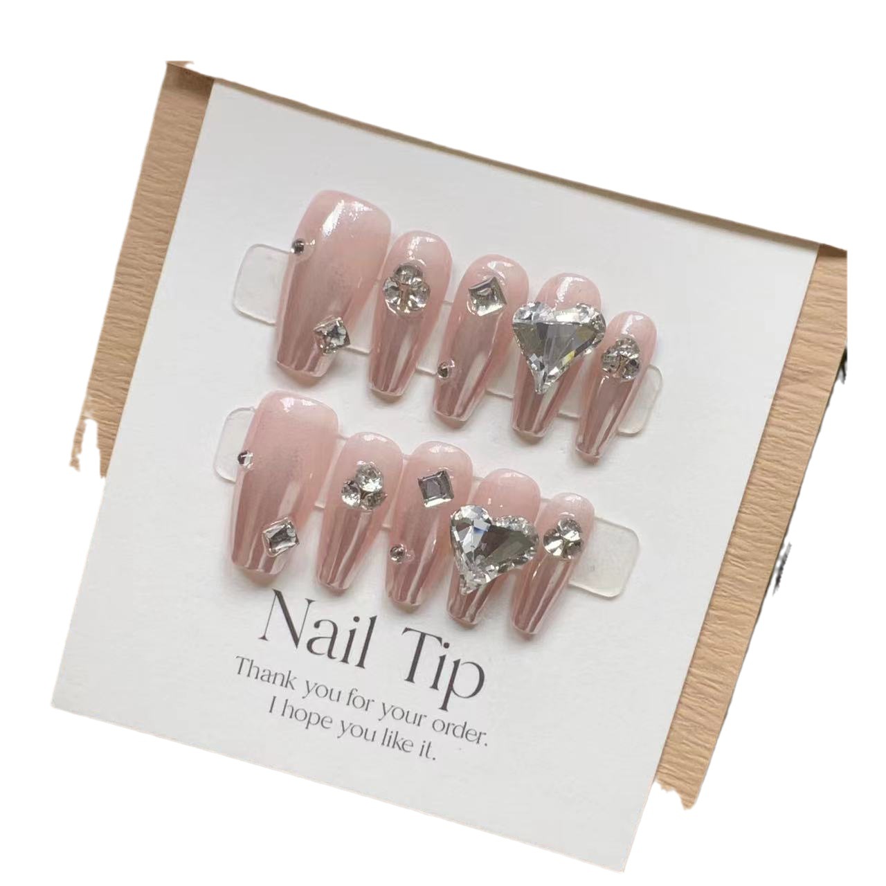 手工美甲穿戴甲假指甲贴片纯欲风冰透裸色极光魔镜粉爆闪爱心钻