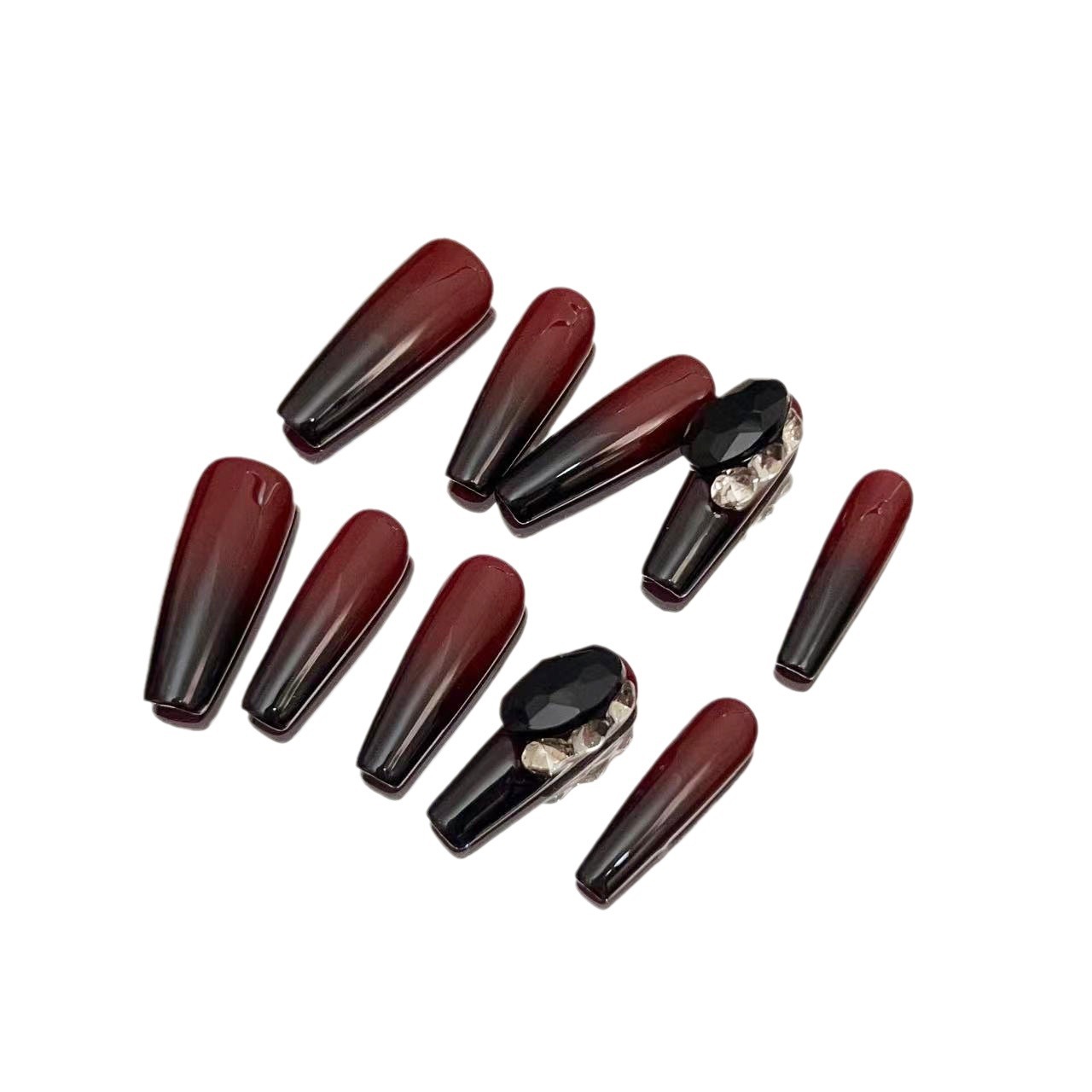 穿戴甲纯手工美甲成品假指甲贴片暗黑系法式渐变黑色精灵爆闪钻