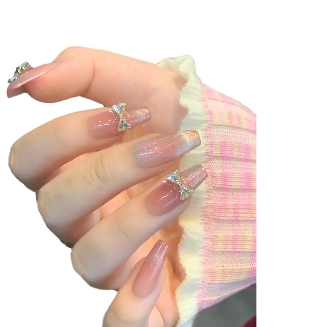 纯手工美甲穿戴甲假指甲贴片高级紫色极光猫眼爆闪蝴蝶钻纯欲裸色