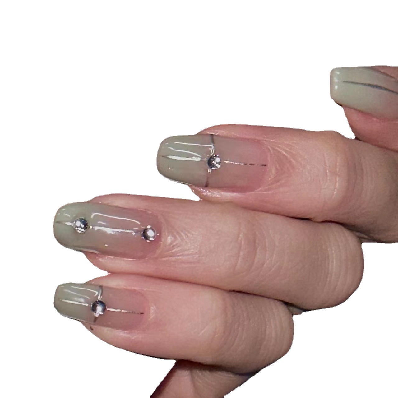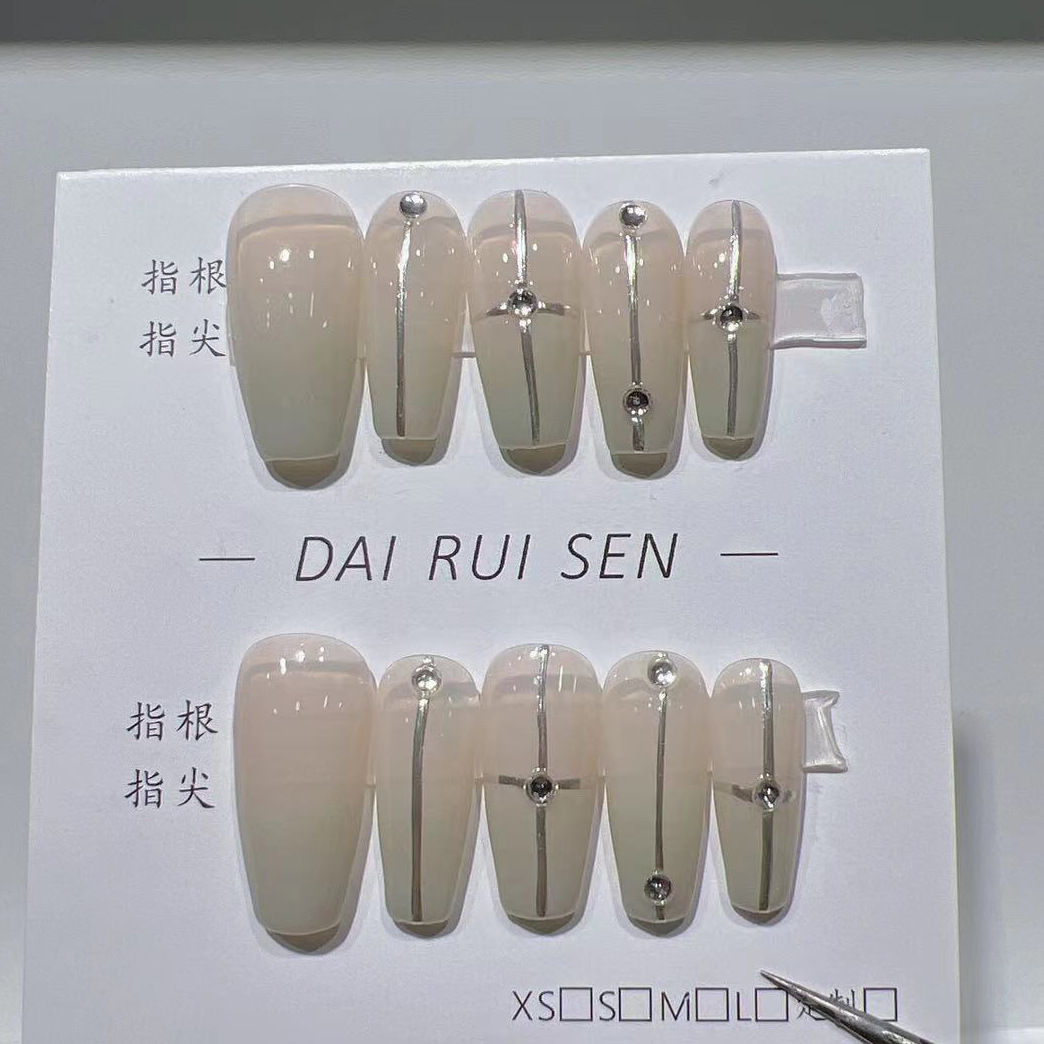 纯手工穿戴甲贴新款爆闪法式十字魔镜粉高级气质奶奶灰中长款