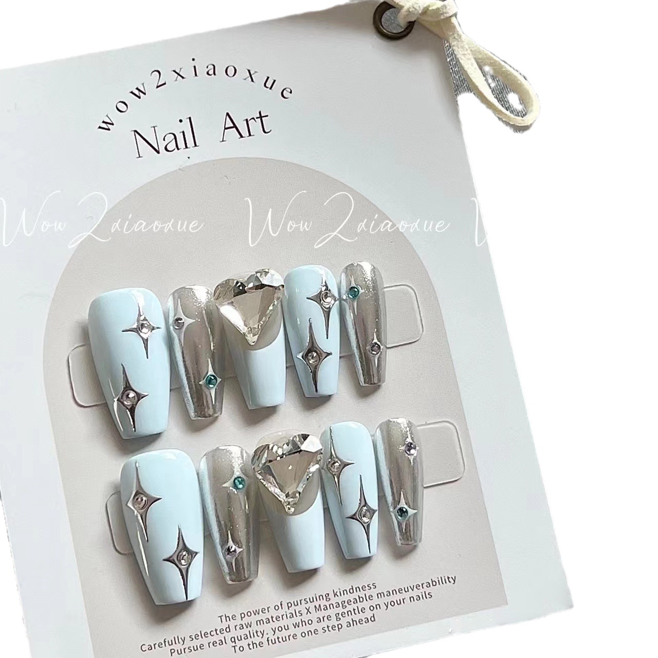 黛瑞森纯手工美甲穿戴甲假指甲贴片千禧辣妹歪心银色四芒星爆款