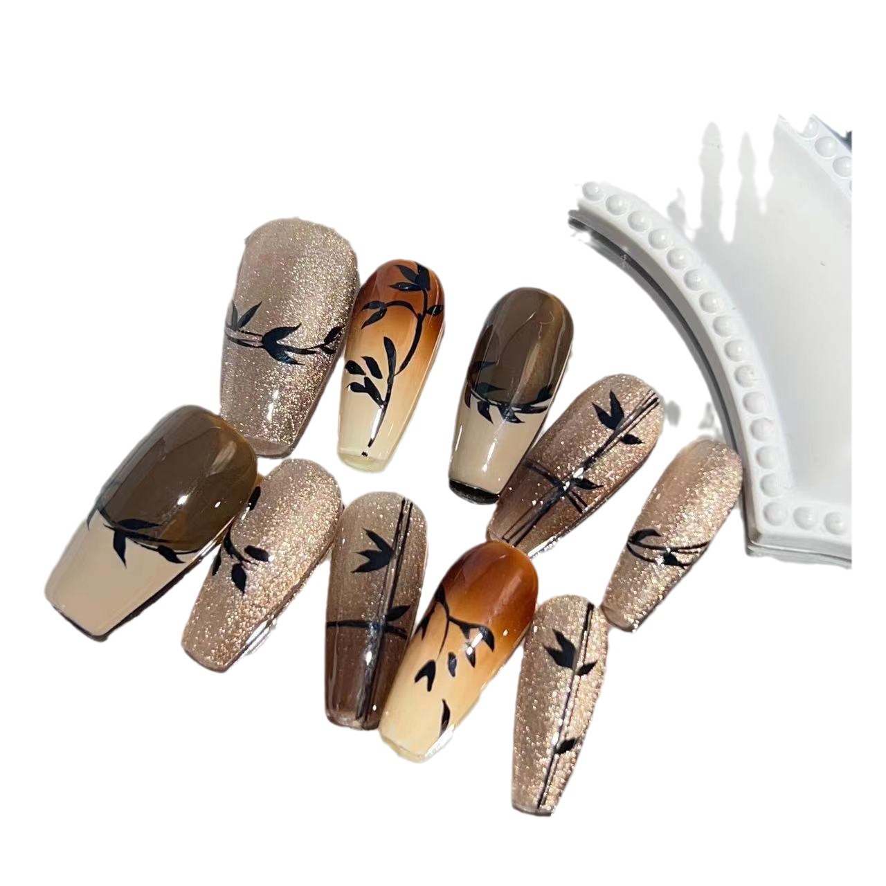 穿戴甲纯手工美甲成品假指甲贴片手绘秋瑾枫叶高级法式猫眼