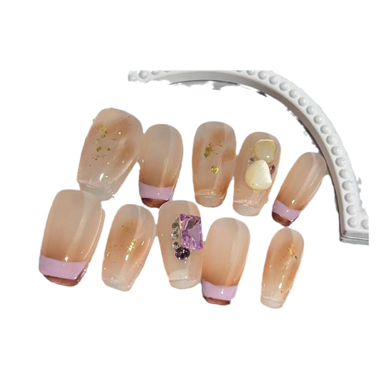 穿戴甲纯手工美甲成品假指甲贴片简约咖色晕染紫色法式显白裸色款