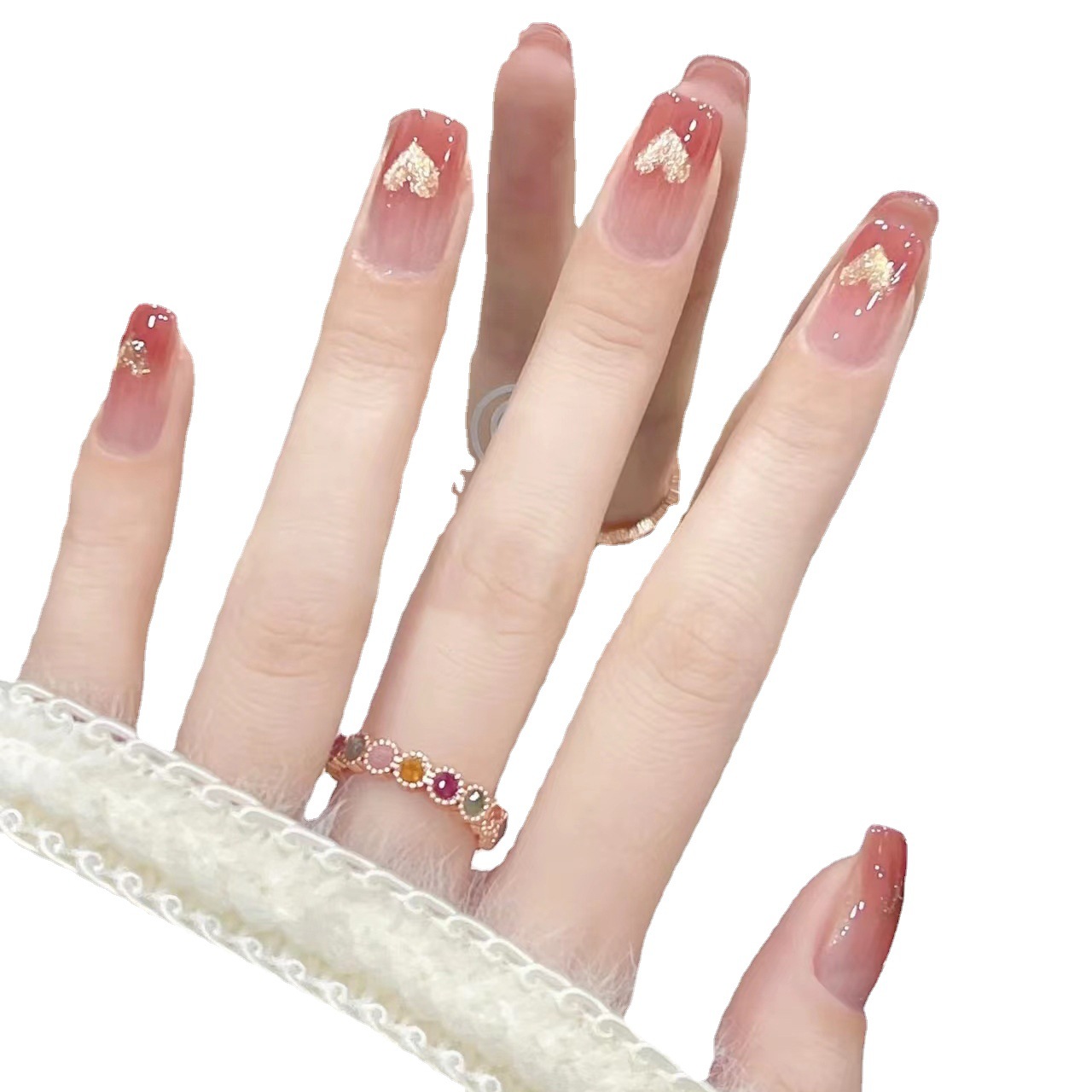纯手工美甲穿戴甲假指甲贴片樱桃色法式渐变晶石猫眼爱心拆卸