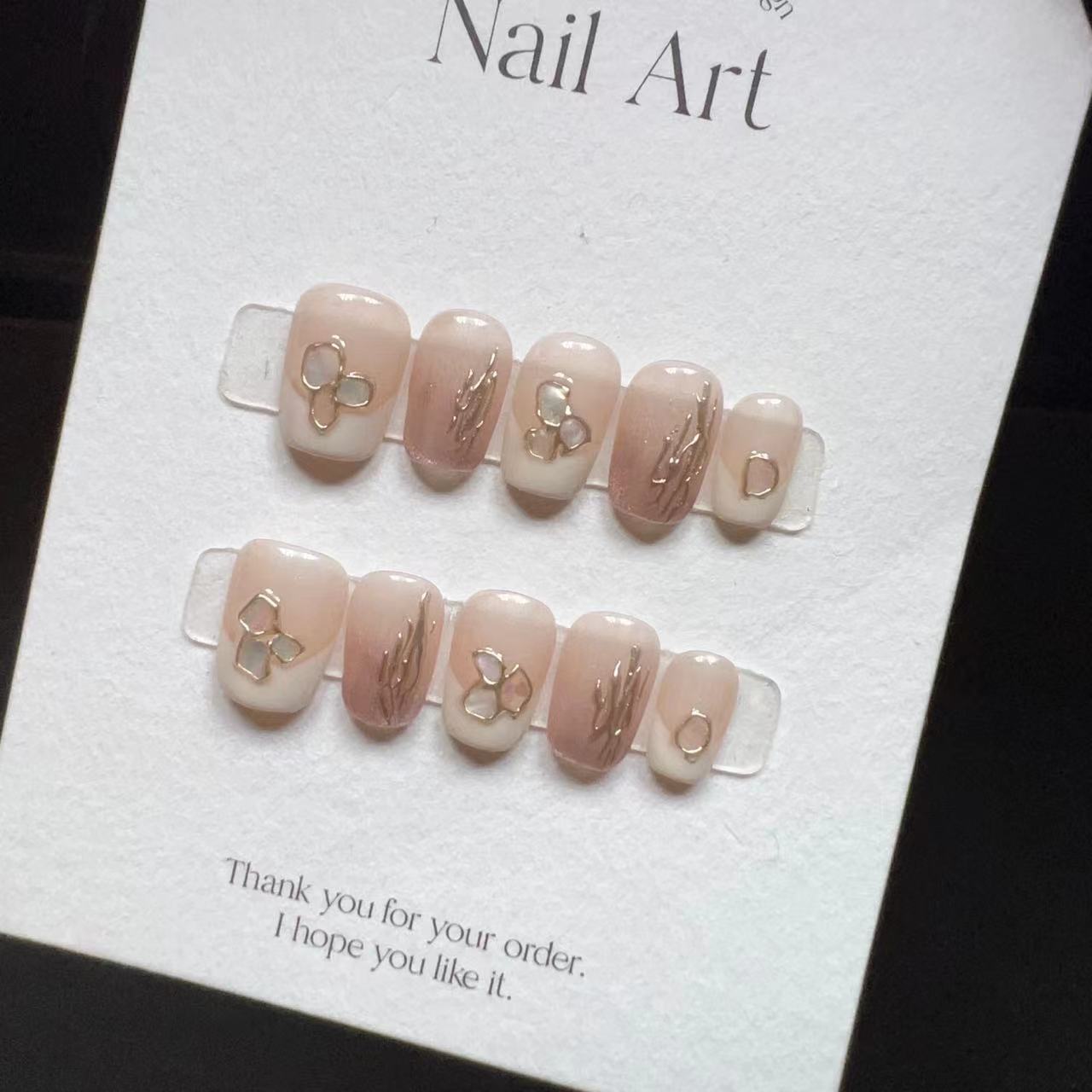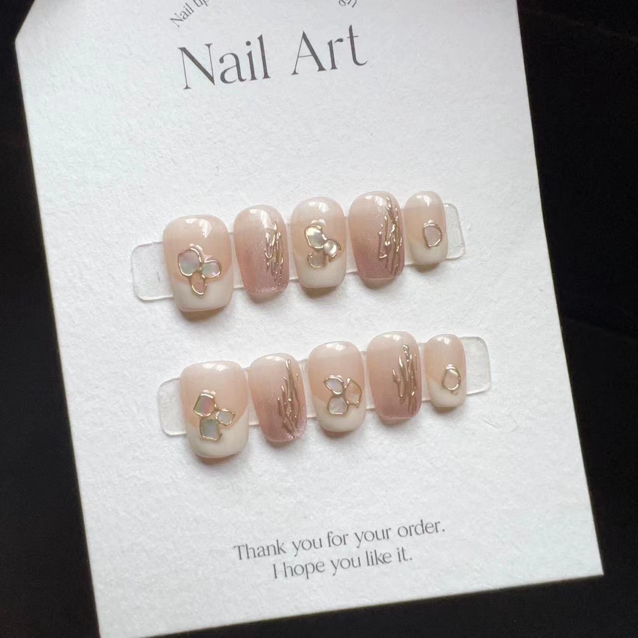 穿戴甲纯手工美甲成品假指甲贴片贝壳之恋轻奢白色魔镜法式热销款
