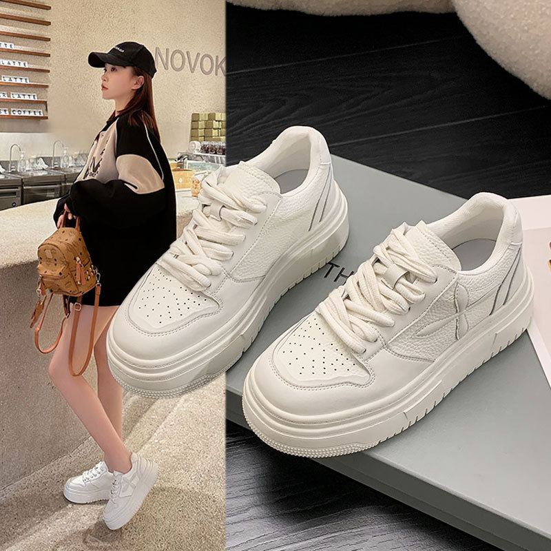 小白鞋女士春季新款四季休闲百搭显腿长减龄圆头厚底增高板鞋