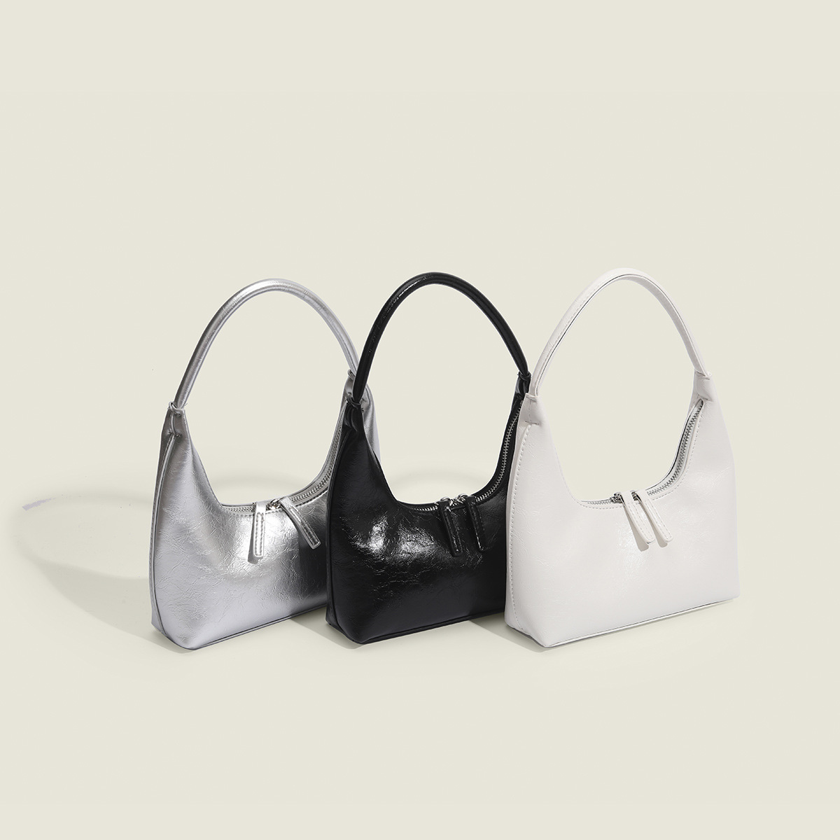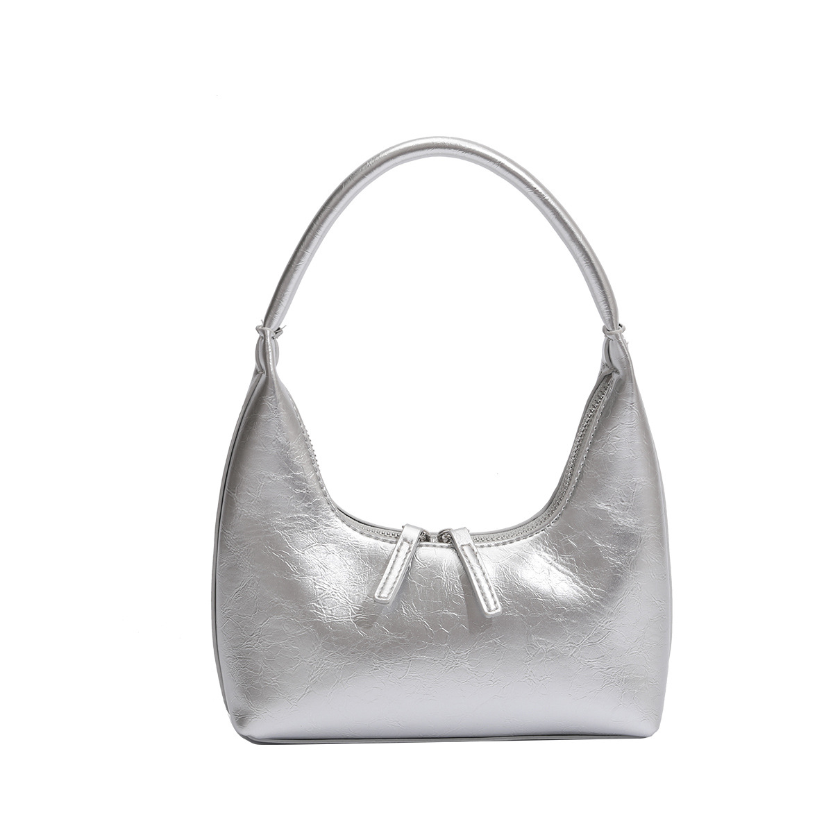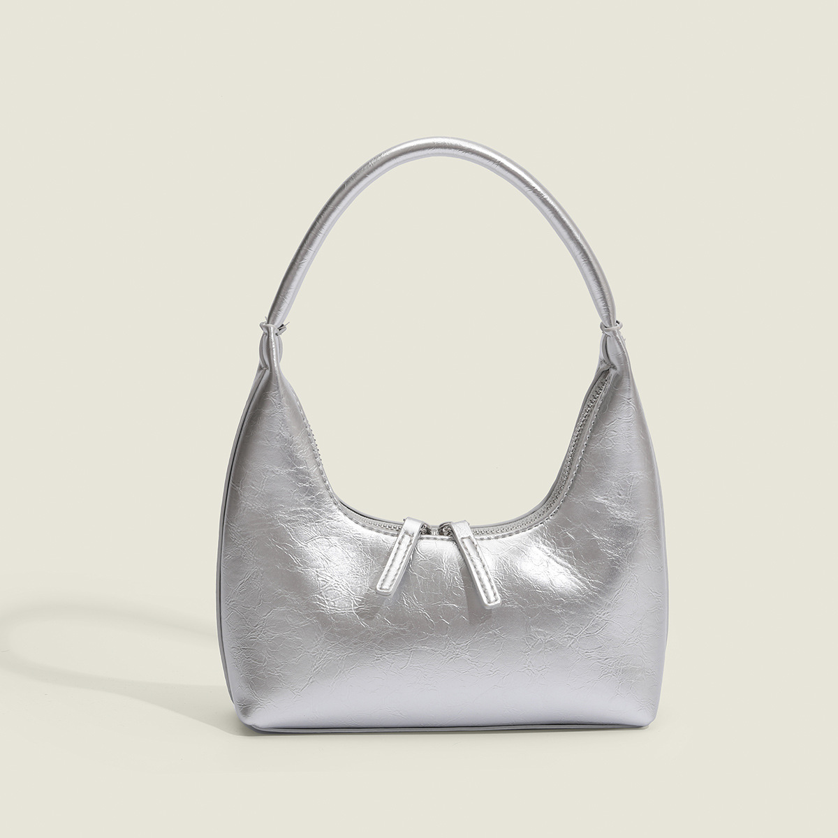 银色月牙腋下包亮色漆面手提包时尚小众设计手拎包流行迷你小包