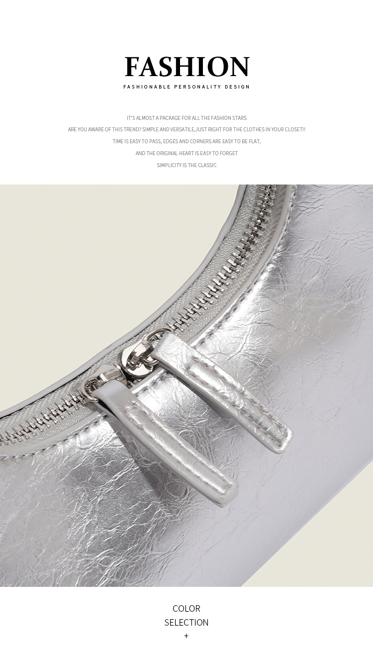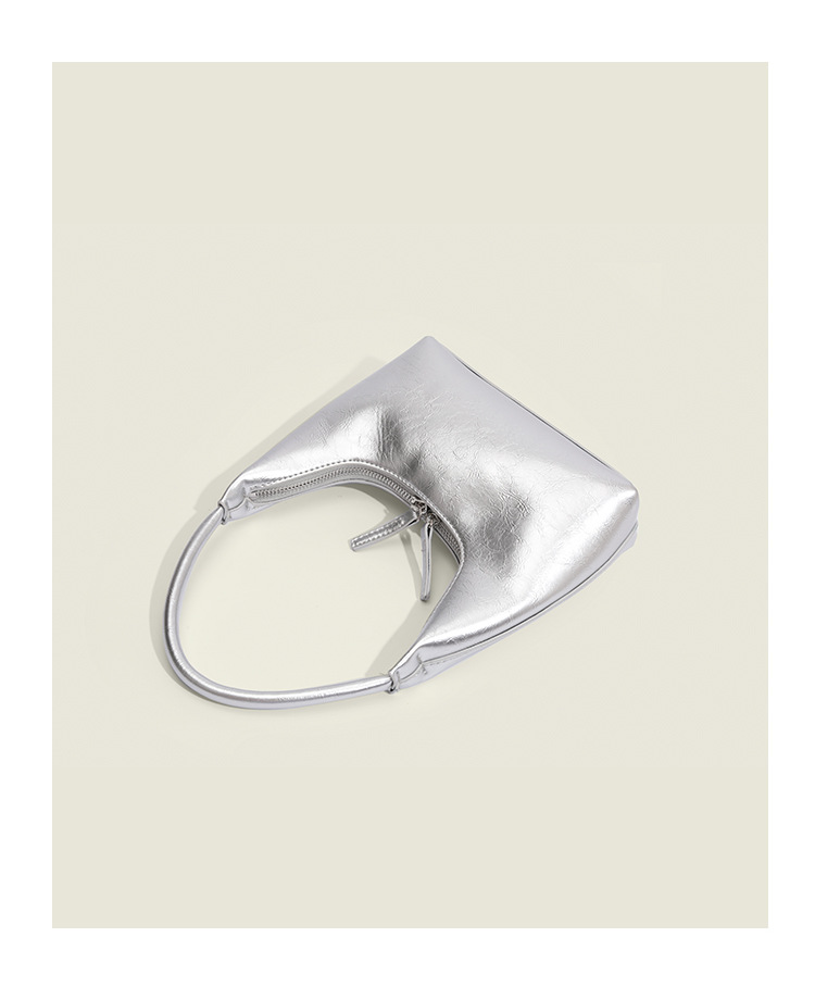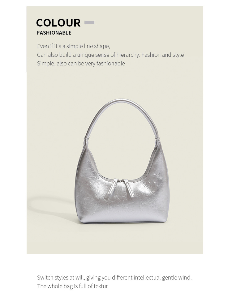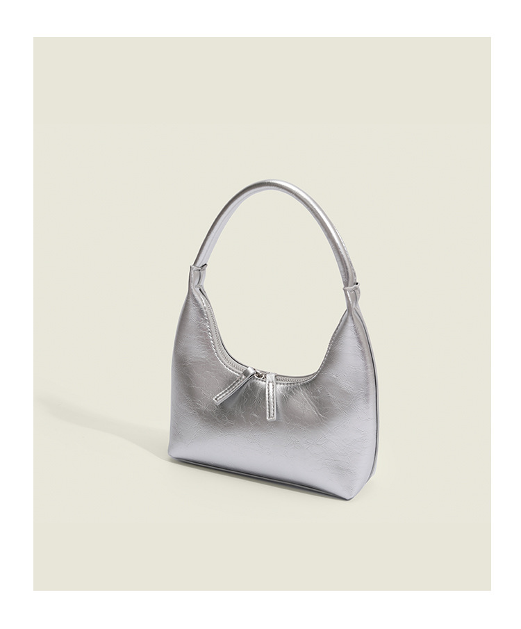 银色月牙腋下包亮色漆面手提包时尚小众设计手拎包流行迷你小包