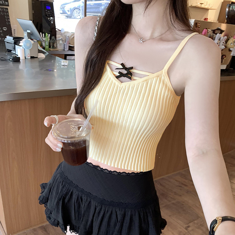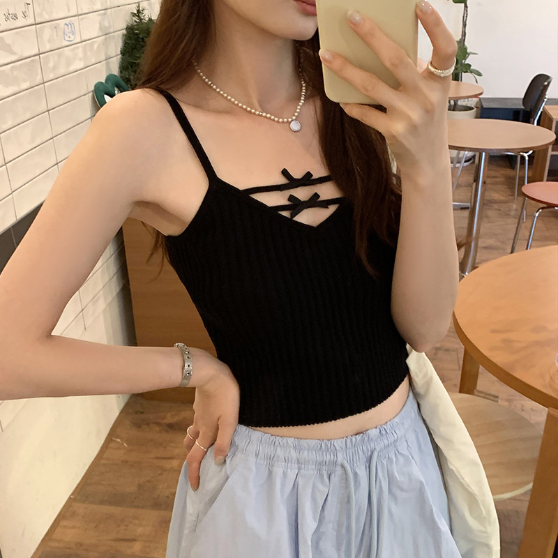 泰式音乐节辣妹穿搭蝴蝶结吊带女夏外穿纯欲镂空打底上衣